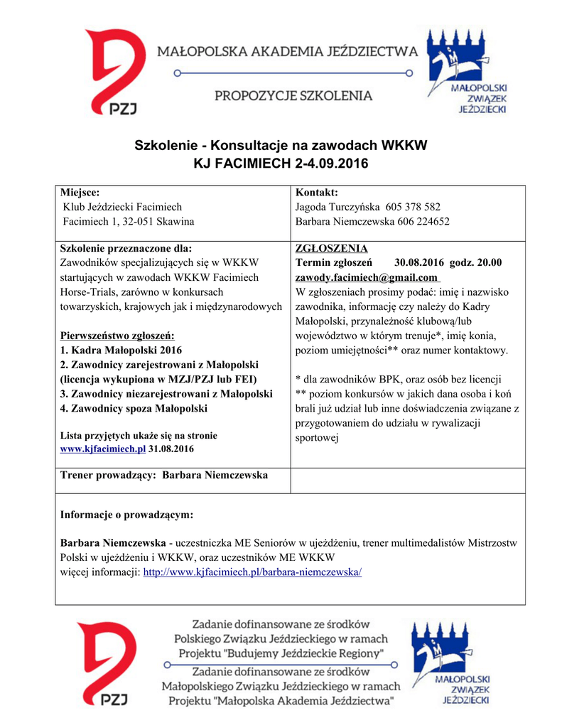 Propozycje szkolenia WKKW 2-4.09.16 KJ Facimiech