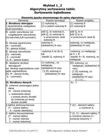 Wykład 1_2 Algorytmy sortowania tablic Sortowanie bąbelkowe