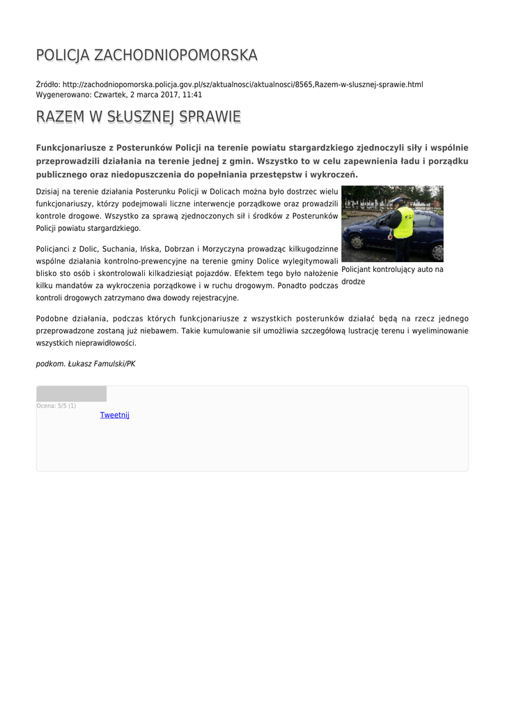 POLICJA ZACHODNIOPOMORSKA RAZEM W SŁUSZNEJ SPRAWIE
