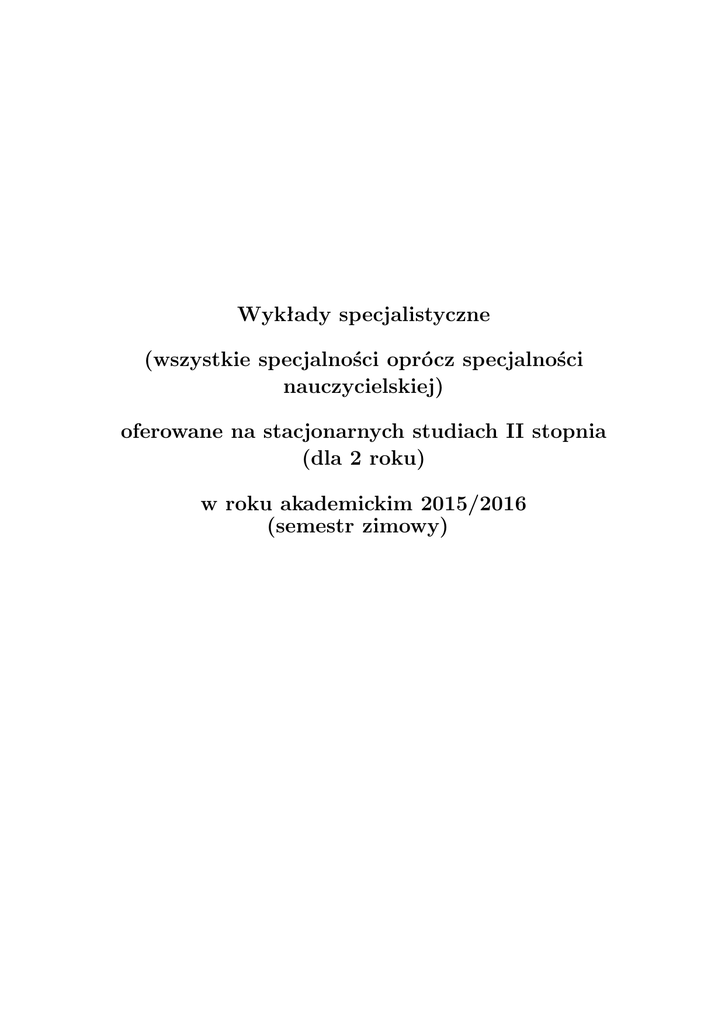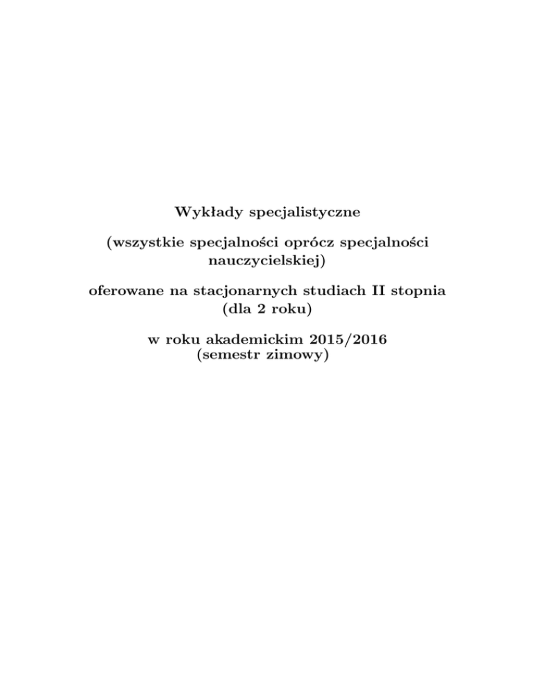 Wykłady specjalistyczne (wszystkie specjalności oprócz