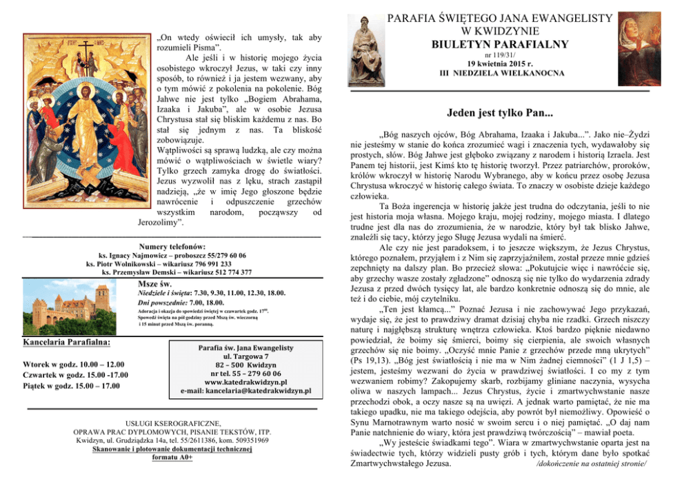 pobierz biuletyn - Parafia pw św. Jana Ewangelisty