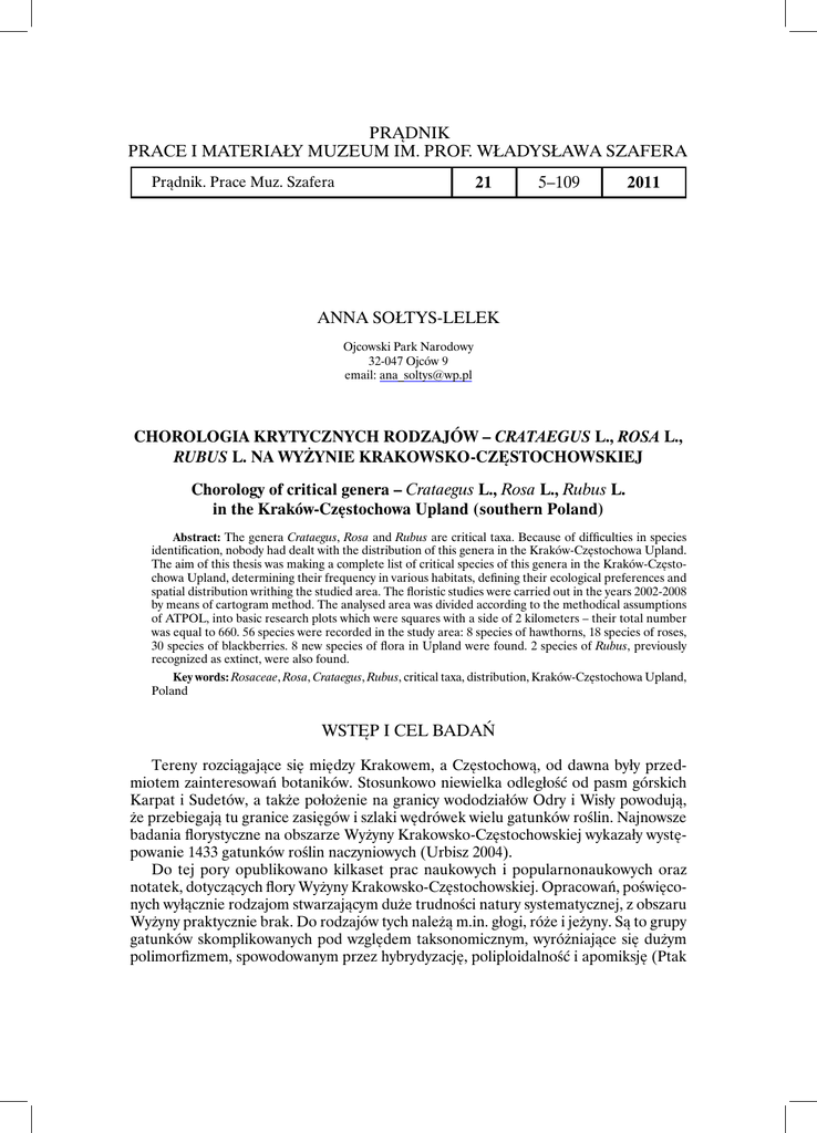 Anna Sołtys -Lelek Chorologia krytycznych rodzajów