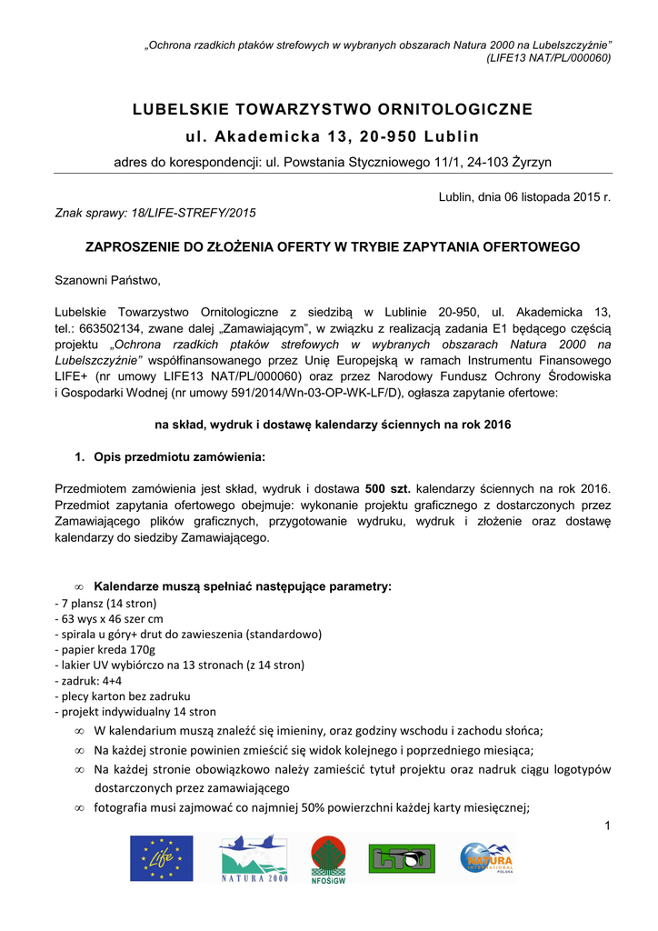 Zapytanie ofertowe - Lubelskie Towarzystwo Ornitologiczne