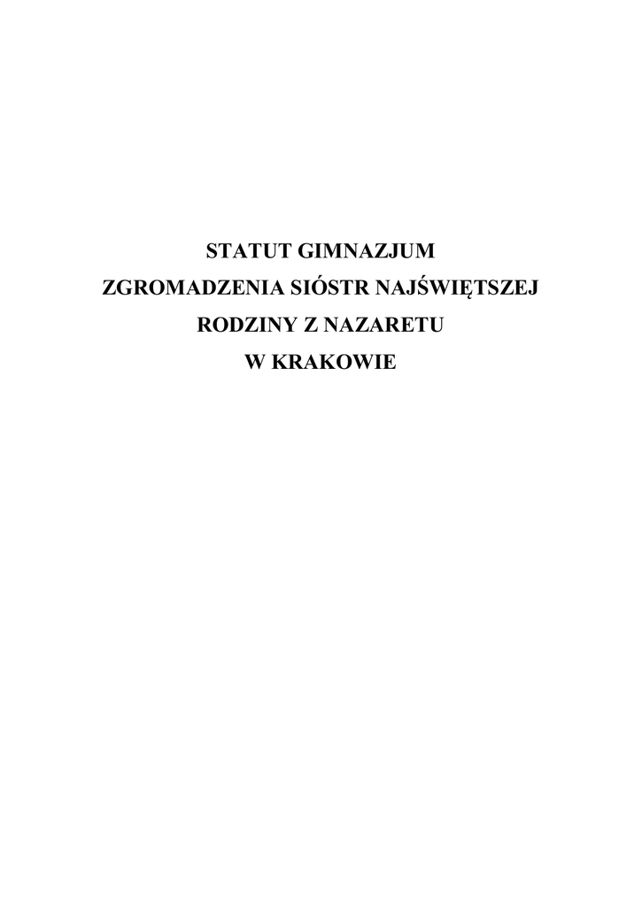 Statut Szkoły - Zespół Szkół Sióstr Nazaretanek w Krakowie