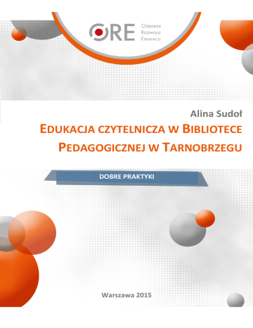 Alina Sudoł EDUKACJA CZYTELNICZA W BIBLIOTECE PEDAGOGICZNEJ W TARNOBRZEGU DOBRE PRAKTYKI Warszawa 2015 Creative Commons - Uznanie autorstwa-Użycie niekomercyjne-Na tych samych warunkach 3.0 Polska Alina Sudoł • Edukacja czytelnicza w Bibliotece Pedagogicznej w Tarnobrzegu • Projekt graficzny i skład Łukasz Kluz Wykorzystano elementy projektu Studia Kreatywnego Małgorzaty Barskiej Ośrodek Rozwoju Edukacji Warszawa 2015 Udostępnianie Ośrodek Rozwoju Edukacji 00-478 Warszawa Aleje Ujazdowskie 28 www.ore.edu.pl Materiał przygotowany w ramach programu System doskonalenia nauczycieli oparty na ogólno-dostępnym kompleksowym wspomaganiu szkół, realizowanego przez Ośrodek Rozwoju Edukacji. Projekt współfinansowany przez Unię Europejską w ramach środków Europejskiego Funduszu Społecznego. Autor rozdziału TYTUŁ ROZDZIAŁU /H1 ( ŚRÓDTYTUŁ /H2 Projekt jest współfinansowany przez Unię Europejską w ramach środków Europejskiego Funduszu Społecznego 2 Alina Sudoł • Edukacja czytelnicza w Bibliotece Pedagogicznej w Tarnobrzegu • Biblioteka pedagogiczna to bardzo ważna placówka w systemie oświaty dla nauczycieli, studentów, uczniów. Biblioteki pedagogiczne często są jedynym wsparciem naukowym na danym terenie, pełniąc rolę bazy książkowej i fachowego poradnictwa. Do zadań biblioteki pedagogicznej należy m.in. inspirowanie i promowanie edukacji czytelniczej. Według Jadwigi Andrzejewskiej (2003, s. 13–17) biblioteki realizują to zadanie poprzez: gromadzenie i udostępnianie uczniom i nauczycielom źródeł informacji; zapoznawanie uczniów ze zbiorami biblioteki, warsztatem informacyjnym i regulaminem; udzielanie indywidualnego instruktażu, różnorodnych porad i informacji bibliotecznych, katalogowych, bibliograficznych, rzeczowych i tekstowych; udzielanie pomocy w organizowaniu zajęć bibliotecznych przez bibliotekarzy szkolnych lub przeprowadzaniu takich zajęć; wypożyczanie bibliotekom szkolnym materiałów do zajęć bibliotecznych, konkursów, spotkań autorskich; informowanie bibliotekarzy szkolnych swojego rejonu o organizowanych imprezach; utrzymywanie z bibliotekami szkolnymi w rejonie działania biblioteki ścisłej współpracy. Biblioteka Pedagogiczna w Tarnobrzegu realizuje edukację czytelniczą poprzez organizowanie seminariów i konferencji, spotkań autorskich, zajęć edukacyjnych prowadzonych przez pracowników biblioteki i uznane autorytety. Współpracuje z nauczycielami i bibliotekarzami szkolnymi, wspiera działający przy Bibliotece Zespół Samokształceniowy Nauczycieli Bibliotekarzy. Na zajęciach bibliotecznych edukuje młodzież, przygotowując ją do samokształcenia, doskonalenia umiejętności docierania do różnych źródeł informacji. W różny sposób promuje czytelnictwo na wszystkich etapach kształcenia, nie zapominając również o najmłodszych czytelnikach. Dla poszerzenia edukacji czytelniczej prowadzi Elektroniczny Biuletyn, w którym czytelnicy realizują swoje pasje literackie. Ponadto promuje nowości z zakresu pedagogiki, psychologii oraz bestsellery literatury pięknej na stronie WWW Biblioteki i Facebooku. Poprzez ekspozycje książek i materiałów multimedialnych oraz wystawy i wystawki propaguje najnowsze osiągnięcia naukowe i literackie. Biblioteka działa w myśl zasady, że edukację czytelniczą można prowadzić różnymi formami pracy. Zajęcia biblioteczne 1/ Prowadzone przez pracowników biblioteki: Zasady korzystania z katalogu Opac, sporządzania bibliografii załącznikowej – dla uczniów szkół ponadgimnazjalnych i gimnazjów. Podczas cyklicznych zajęć młodzież poznaje zasady korzystania z katalogu komputerowego, uczy się samodzielnego korzystania z różnych źródeł informacji, wyszukiwania literatury pomocniczej do prezentacji maturalnej oraz sporządzania bibliografii załącznikowej i przypisów. Wpływ czytania na rozwój intelektualny – dla uczniów gimnazjów. Głównym celem zajęć było zachęcenie uczniów do czytania i uświadomienie, czym jest czytanie, jakie Projekt jest współfinansowany przez Unię Europejską w ramach środków Europejskiego Funduszu Społecznego 3 Alina Sudoł • Edukacja czytelnicza w Bibliotece Pedagogicznej w Tarnobrzegu • obszary mózgu uaktywnia, jakie umiejętności rozwija oraz jakie efekty przynosi w późniejszych latach życia. Jak się uczyć skutecznie? – dla uczniów szkół podstawowych. Zaprezentowano wybrane metody i techniki uczenia się, które pozwalają jak najwięcej zrozumieć i zapamiętać. Zajęciom towarzyszyła wystawa książek na temat technik uczenia się, szybkiego czytania, doskonalenia pamięci. Książka – to nie zawsze znaczy to samo – dla uczniów szkół podstawowych. W formie prezentacji pokazano różne formy książki od tabliczek glinianych, zwojów, poprzez książki drukowane, do e-książek zapisanych w formie elektronicznej. Zwrócono też uwagę na książki dla niewidomych w alfabecie Braille’a i audiobooki. Prezentację wzbogaciła wystawa książek wydanych w XIX w. oraz publikacje na temat historii książki. W poszukiwaniu zaginionego hasła – dla uczniów szkół podstawowych. Gra biblioteczna polegająca na rozwiązywaniu poszczególnych zadań dotyczących książki. Uczniowie zwiedzali bibliotekę, poznawali księgozbiór oraz przeprowadzali wywiady z pracownikami. Końcowym efektem zabawy było ułożenie dwóch haseł reklamujących czytelnictwo: „Czytanie dobrych książek jest niczym rozmowa z najwspanialszymi ludźmi minionych czasów”, „Czytanie książek to najwspanialsza zabawa, jaką sobie wymyśliła ludzkość”. Tropem Miziołków – dla uczniów szkół podstawowych Gra biblioteczna sprawdzająca znajomość lektur szkolnych z wykorzystaniem tekstu Dynastii Miziołków. Zwycięska grupa otrzymała nagrodę książkową, którą przekazała bibliotece szkolnej. Przedszkolaki w bibliotece: zabawy i zagadki – dzieci uczestniczyły w zabawach i