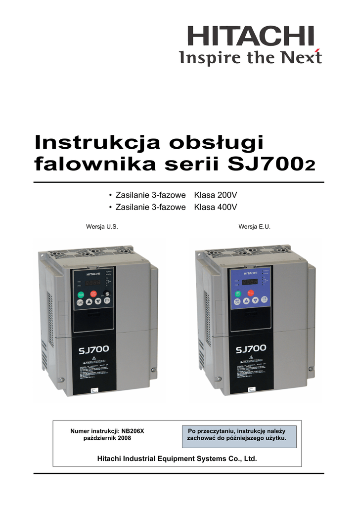 UWAGA: Przed rozpoczęciem pracy z falownikami serii SJ7002 należy dokładnie prze-czytać