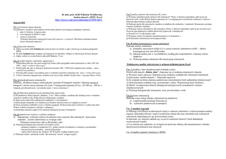Dr hab. prof. SGH Wiktoria Wróblewska Analiza danych z SPSS i