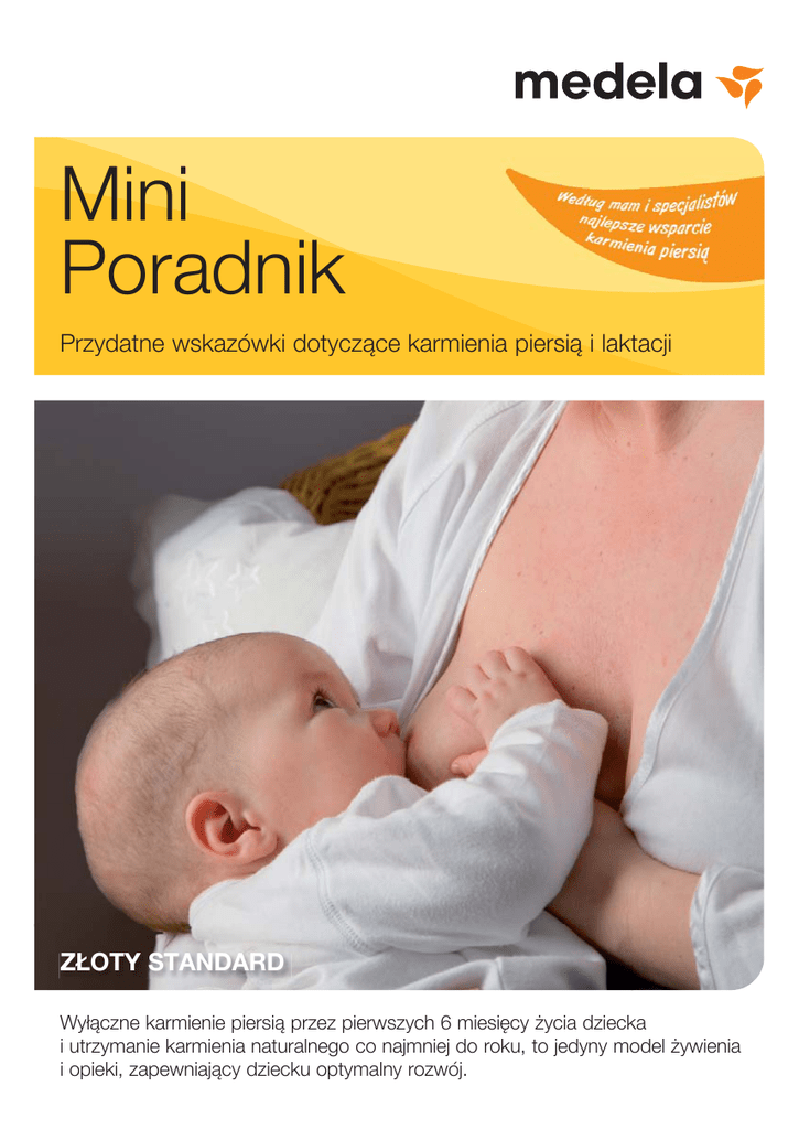 Mini Poradnik Przydatne wskazówki dotyczące karmienia piersią i laktacji ZŁOTY STANDARD Wyłączne karmienie piersią przez pierwszych 6 miesięcy życia dziecka i utrzymanie karmienia naturalnego co najmniej do roku, to jedyny model żywienia i opieki, zapewniający dziecku optymalny rozwój. Spis treści Fenomen mleka mamy 3 Najczęściej występujące problemy z karmieniem piersią i laktacja 8 Odciąganie pokarmu 14 Kolekcjonowanie pokarmu 23 Transport i dezynfekcja 26 Podawanie pokarmu 27 Ochrona piersi 30 Ziółka 33 Bielizna firmy Medela 34 Polecana literatura 36 2 Wyłączne karmienie piersią przez pierwszych 6 miesięcy życia dziecka i utrzymanie karmienia naturalnego, co najmniej do roku, to wyraz najgłębszej matczynej miłości i ojcowskiego rozsądku. Mini Poradnik przeznaczony jest dla rodziców, którzy rozumieją, że nic nie jest w stanie zastąpić dziecku karmienia piersią, realizowanego zgodnie z powyższym zaleceniem. Propagujemy karmienie naturalne, bo nadrzędnym celem naszego działania jest dobro dzieci. Fenomen mleka mamy Wszystkie liczące się w świecie organizacje zajmujące się tematyką zdrowia, profilaktyką zdrowotną oraz zdrowym stylem życia zdecydowanie propagują karmienie piersią. Większość jest zgodna co do tego ile powinno trwać wyłączne karmienie piersią – 6 miesięcy. Pewne rozbieżności występują jedynie w zaleceniach dotyczących najlepszego momentu na zakończenie karmienia piersią. Naszym zdaniem zakończenie to powinno nastąpić nie wcześniej, niż po ukończeniu przez dziecko 1 roku życia. Stanowisko takie oparte jest na dziesiątkach badań naukowych potwierdzających geniusz natury. Zarówno skład kobiecego pokarmu jak i sposób jego podawania jest dla optymalnego rozwoju dziecka niezwykle istotny. Ten sposób opieki nad nowonarodzonym dzieckiem zapewnia mu łagodne przystosowanie się do samodzielnego funkcjonowania w poczuciu bliskości, akceptacji i miłości. Z całą stanowczością stoimy na stanowisku, że nie istnieje ani taki pokarm sztuczny, ani taka metoda jego podania, która bez uszczerbku dla zdrowia i rozwoju dziecka mogłaby zastąpić w pełni karmienie piersią. By rozwiać wątpliwości, dowiedzieć się więcej i zaplanować dobre dla karmienia piersią praktyki, warto już w okresie ciąży umówić się na spotkanie z konsultantką laktacyjną. Pomimo tego, że stosowne ministerstwa uporczywie odmawiają rejestracji ich zawodu, osoby te są często niezastąpione w trakcie rozwiązywania problemów z karmieniem naturalnym i laktacją. Zainteresowanych tą tematyką oraz poszukujących kontaktu do konsultantek laktacyjnych, odsyłamy na strony Fundacji Mleko Mamy www.mlekomamy.pl 3 POSTĘPOWANIE WAŻNE DLA BEZPROBLEMOWEGO KARMIENIA PIERSIĄ W okresie ciąży uśmiechaj się, zachowuj spokój i wiarę w to, że wszystko będzie w najlepszym porządku. Jeżeli masz jakiekolwiek wątpliwości, dotyczące Twoich piersi skonsultuj się z poradnią laktacyjną. Zadbaj, aby Twoje maleństwo było prawidłowo powitane na świecie (najlepiej gdyby szpital spełniał standardy „szpitala przyjaznego dziecku”). Upewnij się czy szpital, który wybrałaś może Ci w tym pomóc, czy zatrudnia doradców laktacyjnych, neurologopedę? Czy umożliwia pobyt osoby Tobie bliskiej w trakcie porodu? Czy propaguje karmienie naturalne? Tuż po urodzeniu dziecko powinno być położone na Twoim brzuchu bądź w ramionach, gdzie spędzi pierwsze dwie godziny swojego życia „na zewnątrz”. W tym czasie pojawi się u niego odruch szukania piersi. Gdy to zauważysz delikatnie pomóż mu odnaleźć właściwą drogę. Rozpoczęcie ssania w trakcie pierwszych dwóch godzin życia ma niebagatelne znaczenie dla dalszego, bezproblemowego karmienia piersią. SIARA – żółtawa wydzielina pojawiająca się pod koniec ciąży i utrzymująca do 4–5 dni po porodzie. Zawiera więcej białka, mniej tłuszczu i cukru (laktozy). Zawiera bardzo ważne przeciwciała, których organizm dziecka jeszcze nie produkuje oraz globulki tłuszczowe, ułatwiające dziecku trawienie i stanowiące naturalną ochronę układu pokarmowego. Siarę traktuje się przede wszystkim jako czynnik budujący odporność dziecka. Położne opiekujące się Tobą i dzieckiem powinny pokazać Ci, jak w prawidłowy sposób należy przystawić dziecko do piersi. Poproś też, by sprawdzono czy Twoje dziecko nie ma problemów ze ssaniem. Jest to niezwykle ważne. Jeśli nikt z personelu szpitala nie będzie w stanie poprawnie ocenić odruchów dziecka zorganizuj sobie prywatną wizytę konsultantki laktacyjnej lub logopedy zaraz po wyjściu ze szpitala. Zdrowe dziecko nie powinno być niczym dokarmiane ani dopajane na terenie szpitala. Przez dokarmianie zwykłą butelką ze smoczkiem można zaburzyć odruch ssania, a poprzez fakt nasycenia, dziecko straci chęci do efektywnego ssania Twojej piersi. Jeżeli widzisz, że dziecko ma potrzebę ssania przystawiaj je do piersi tak często jak tego potrzebuje, jednak nie rzadziej, niż co 2,5–3 godziny. Pamiętaj! Większość porodów to porody fizjologiczne, przy których nie występuje zagrożenie dla dziecka, ani dla Ciebie. Zdarzają się jednak przypadki, kiedy ze względów medycznych od powyższych zasad należy odstąpić. Zaufaj lekarzowi i nie przeszkadzaj mu w pracy. Jeżeli on postanowi zrezygnować z którejś z powyższych zasad, ma ku temu z pewnością ważny powód, a jego głównym celem jest bezpieczeństwo Twoje i Twojego dziecka. 4 Jeżeli zdarzy się, że nie będziesz mogła być ze swoim dzieckiem w pierwszych dniach jego życia, rozpocznij (w przeciągu dwóch godzin po porodzie) regularne (co 2,5–3 godziny) odciąganie pokarmu. Najlepiej używaj do tego profesjonalnego laktatora elektrycznego. Dzięki temu utrzymasz laktację do momentu, kiedy bez przeszkód będziesz mogła karmić bezpośrednio piersią. Pierwszym zewnętrznym pokarmem jaki otrzyma Twoje dziecko powinna być 