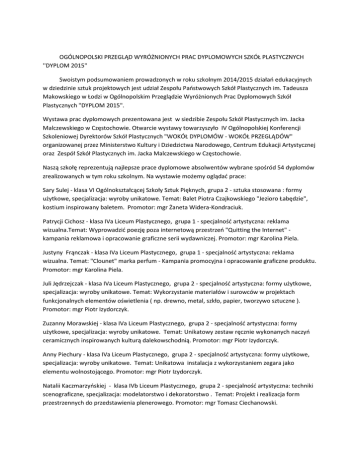 DYPLOM 2015 - Zespół Państwowych Szkół Plastycznych w Łodzi