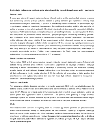 Instrukcja pobierania próbek gleb, ziem i podłoży ogrodniczych oraz