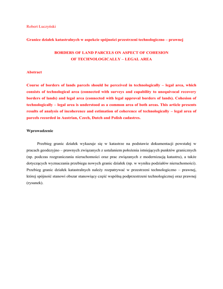 Robert Łuczyński Granice działek katastralnych w aspekcie