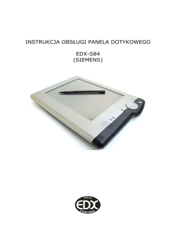 INSTRUKCJA OBSŁUGI PANELA DOTYKOWEGO EDX-S84 (SIEMENS) SPIS TREŚCI 1. 2. 3. 4. 5. BUDOWA PANELA DOTYKOWEGO ................ 3 WŁĄCZANIE/WYŁĄCZANIE ......................... 4 BATERIA - ŁADOWANIE ............................. 4 OBSŁUGA SALI ......................................... 5 4.1 WYBÓR SYGNAŁU ............................... 5 4.2 PLAZMA ............................................ 6 4.3 DVD RECORDER ................................. 6 4.4 VIDEO-KONFERENCJA ......................... 7 4.5 GŁOŚNOŚĆ ........................................ 8 ROZWIĄZYWANIE PROBLEMÓW .................. 9 5.1 CAŁKOWITE ROZŁADOWANIE BATERII ... 9 5.2 RESET/RESTART.................................. 9 2 1. BUDOWA PANELA DOTYKOWEGO 1. 2. 3. 4. 5. 6. 7. 8. Rysik. Mikrofon. Ekran LCD 8,4’’ z panelem dotykowym. PokaŜ/ukryj klawiaturę ekranową. ON/OFF – włącznik urządzenia. Dioda LED (zielona) – sygnalizuje ładowanie się akumulatorów. Głośnik. Dioda LED (pomarańczowa) – sygnalizuje stan urządzenia (on/off). 1. Wejście zasilacza (12V). 2. Rysik. Panel dotykowy EDX-S84 jest komputerem z systemem operacyjnym Windows CE i został dostosowany do współpracy z systemami centralnego sterowania. Urządzenie pracuje w sposób bezprzewodowy, komunikując się z otoczeniem drogą radiową, a sterowanie urządzeniami audio-video odbywa się za pomocą specjalnej aplikacji uruchomionej na panelu. 3 2. WŁĄCZANIE/WYŁĄCZANIE Przycisk (5) słuŜy zarówno do włączania jak i wyłączania urządzenia. Po włączeniu urządzenia natychmiast na ekranie pojawia się aplikacja sterująca salą i urządzenie jest gotowe do pracy. 3. BATERIA – ŁADOWANIE Podczas obsługi sali i normalnej pracy urządzenia moŜna odłączyć przewód zasilający i pracować w sposób bezprzewodowy. Urządzenie pracuje do około 3 godzin na zasilaniu bateryjnym. W prawym dolnym rogu ekranu znajduje się obszar „BATERIA”, w którym wyświetlane są procentowe komunikaty o stanie baterii. W przedziale 100%-30% komunikaty wyświetlane są na zielono. Gdy stan baterii jest słaby, pojawi się komunikat pomarańczowy, a w końcu czerwony. Przy stanie baterii 10-20% naleŜy podłączyć urządzenie do zasilacza w celu ładowania baterii. Pojawi się komunikat „ŁADOWANIE”, pełne ładowanie trwa do 3 godzin, a po naładowaniu baterii na ekranie pojawi się napis „100%”. Podczas ładowania świeci się zielona dioda (6) informując, Ŝe urządzenie podłączone jest do ładowania, po pełnym naładowaniu baterii dioda gaśnie. Po pełnym naładowaniu baterii NIE musimy odłączać urządzenia od zasilacza. Zaleca się aby po skończonej pracy wyłączyć panel przyciskiem ON/OFF, podłączyć urządzenie do zasilacza i w takim stanie pozostawić. 4 Pozostawienie urządzenia bez zasilania na okres 3-4 dni spowoduje całkowite wyładowanie baterii i restart systemu przy ponownym włączeniu (patrz punkt 5.2). 4. OBSŁUGA SALI Urządzenie pozwala na sterowanie zainstalowanymi urządzeniami A/V z dowolnego miejsca sali. Typowo mamy moŜliwość sterowania takimi urządzeniami jak: • PROJEKTOR • TELEWIZOR • DVD, VHS • OŚWIETLENIE, EKRAN, ROLETY • GŁOŚNOŚĆ NA SALI • WYBÓR SYGNAŁÓW ŹRÓDŁOWYCH 4.1 WYBÓR SYGNAŁU Zwykle sale A/V wyposaŜone są w takie źródła sygnału jak: • Przyłącza VGA do podłączania laptopów – np. umieszczone w stole, • DVD – np. umieszczony w szafce sprzętowej, • Projektor lub telewizor plazmowy. Obraz z wybranego urządzenia moŜe być wyświetlany na ekranie projektora lub monitora, a dźwięk jest słyszalny w głośnikach naściennych lub sufitowych. Wyboru sygnału dokonujemy na panelu w obszarze WYBÓR SYGNAŁU, naciskając odpowiedni kwadrat. Wybrany sygnał zaznaczany jest na kolor czerwony. 5 Na ekranie sterującym znajdują się równieŜ przyciski obsługi urządzeń, po naciśnięciu których otwierają się okna obsługi wybranego urządzenia. Na przykład, jeśli zamierzamy sterować telewizorem plazmowym naleŜy nacisnąć przycisk „PLAZMA”, po czym otworzy się okno do sterowania urządzeniem. Analogicznie obsługujemy inne urządzenia. 4.2 PLAZMA Na poniŜszym rysunku znajdują się przyciski do sterowania telewizorem plazmowym. 4.3 DVD RECORDER Okna do obsługi nagrywarki DVD. 6 4.4 VIDEO-KONFERENCJA Opis poszczególnych przycisków: • START – uruchamia video-konferencję z trybu uśpienia, lub powraca do strony startowej. • SPIS TEL. – wybór ksiąŜki telefonicznej. • PRESET OFF – funkcja PRESET nieaktywna. • PRESET CZYTAJ – po naciśnięciu przycisku numerycznego 1-9 następuje wybór ustawienia kamery z pamięci. • PRESET USTAW - po naciśnięciu przycisku numerycznego 1-9 następuje zapis ustawienia kamery do pamięci. • POWRÓT – przejście do poprzedniej funkcji, podczas trwania konferencji przełączanie trybów pracy. • POŁĄCZ – rozpoczęcie połączenia. • ROZŁĄCZ – zakończenie połączenia. • ZOOM – sterowanie przybliŜaniem kamery. • STEROWANIE MENU – strzałki sterujące obsługują menu wyświetlane na ekranie. • STEROWANIE KAMERA – strzałki sterujące kierują kamerą. • PRZYCISKI NUMERYCZNE – do wpisywania numeru telefonu lub obsługi funkcji PRESET. • abc – wpisywanie liter. • < - kasowanie ostatniego znaku. • . * # - wstawianie znaków specjalnych 7 4.5 GŁOŚNOŚĆ Przyciski sterujące głośnością sali. 8 5. ROZWIĄZYWANIE PROBLEMÓW 5.1 CAŁKOWITE ROZŁADOWANIE BATERII Całkowite rozładowanie baterii nastąpi jeśli: 1. pozostawimy wyłączone urządzenie bez podłączonego zasilacza przez okres 3-4 dni, 2. nie podłączymy urządzenia do zasilacza, podczas gdy poziom mocy baterii spadnie poniŜej 10%. Całkowite rozładowanie baterii skutkuje tym, Ŝe panel nie będzie chciał się uruchomić po naciśnięciu przycisku (5) ON/OFF. NaleŜy wtedy podłączyć panel do zasilacza i uruchomić go przyciskiem (5) ON/OFF. Nastąpi restart urząd