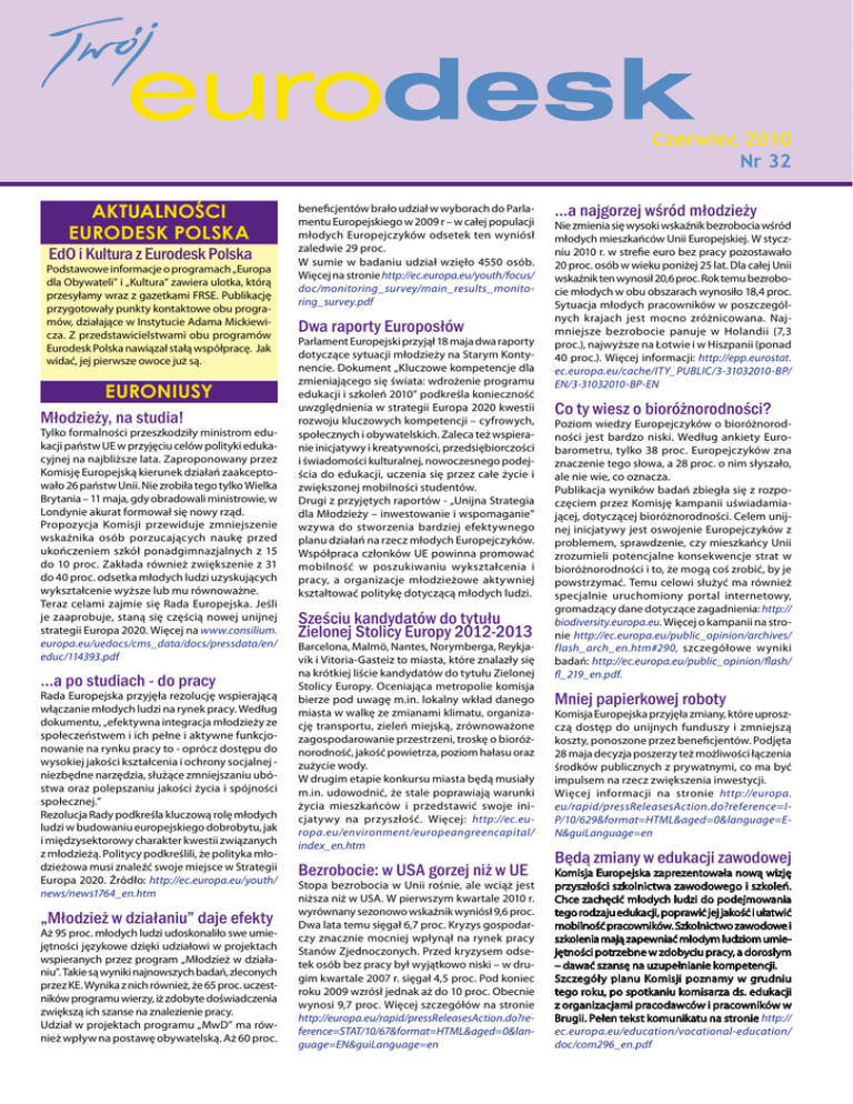 Czerwiec 2010 Nr 32 AKTUALNOŚCI EURODESK POLSKA