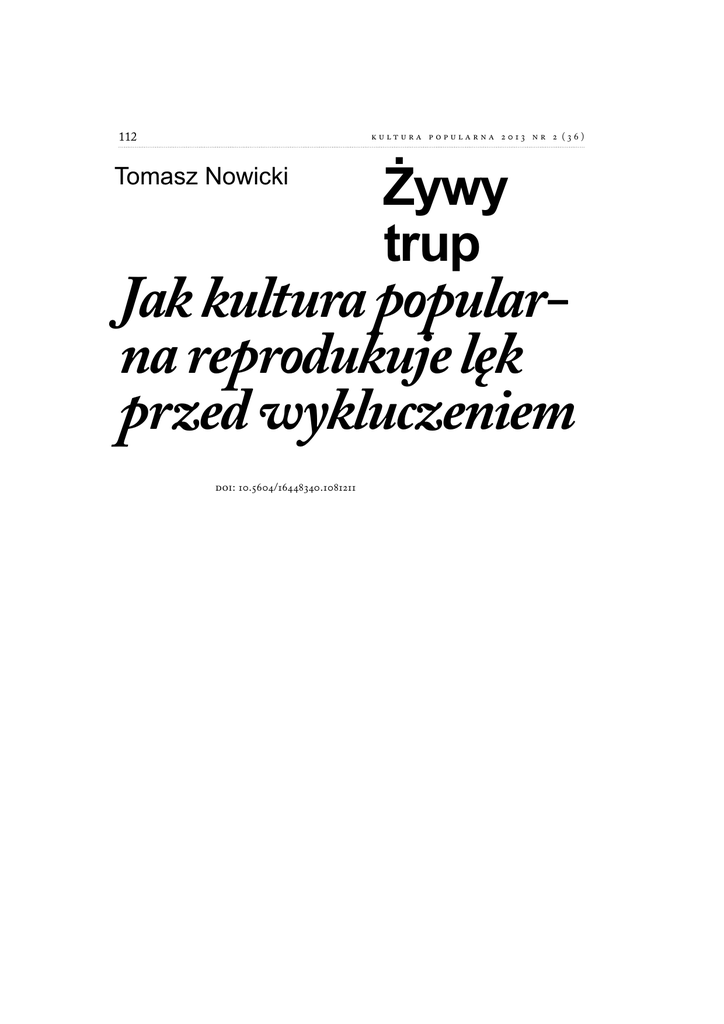 Żywy trup Jak kultura popular- na reprodukuje lęk przed wykluczeniem