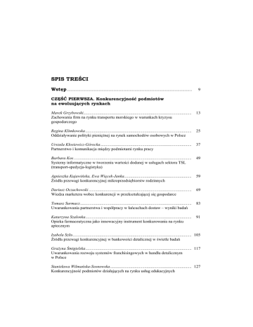 SPIS TREŚCI Wstęp ...................................................................................................... 9 CZĘŚĆ PIERWSZA. Konkurencyjność podmiotów na ewoluujących rynkach Marek Grzybowski ..................................................................................................... Zachowania firm na rynku transportu morskiego w warunkach kryzysu gospodarczego 13 Regina Klimkowska ................................................................................................... Oddziaływanie polityki pienięŜnej na rynek samochodów osobowych w Polsce 25 Urszula Kłosiewicz-Górecka ..................................................................................... Partnerstwo i komunikacja między podmiotami rynku pracy 37 Barbara Kos .............................................................................................................. Systemy informatyczne w tworzeniu wartości dodanej w usługach sektora TSL (transport-spedycja-logistyka) 49 Agnieszka Kujawińska, Ewa Więcek-Janka............................................................... Źródła przewagi konkurencyjnej mikroprzedsiębiorstw rodzinnych 59 Dariusz Oczachowski ................................................................................................ Wiedza marketera wobec konkurencji w przekształcającej się gospodarce 69 Tomasz Surmacz ........................................................................................................ Uwarunkowania partnerstwa i współpracy w łańcuchach dostaw – wyniki badań 83 Katarzyna Szalonka ................................................................................................... Opieka farmaceutyczna jako innowacyjny instrument konkurowania na rynku aptecznym 91 Izabela Szlis ............................................................................................................... 105 Źródła przewagi konkurencyjnej w bankowości detalicznej w świetle badań GraŜyna Śmigielska ................................................................................................... 117 Uwarunkowania rozwoju systemów franchisingowych w handlu detalicznym w Polsce Stanisława Wilmańska-Sosnowska ............................................................................ 127 Konkurencyjność podmiotów działających na rynku usług edukacyjnych 4 Leonid Worobjow ...................................................................................................... 135 Niepewność i ryzyko w podejmowaniu decyzji Maciej Zastempowski ................................................................................................ 145 Instrumenty konkurowania stosowane przez MSP w dobie kryzysu finansowego Piotr Zawadzki .......................................................................................................... 153 Intensywność konkurencji na rynku prasy codziennej w ocenach wydawców CZĘŚĆ DRUGA. Rozwój działań marketingowych w organizacjach Anetta Barska ............................................................................................................ 167 Ocena jakości usług medycznych na przykładzie prywatnej placówki medycznej w Zielonej Górze Jacek Chotkowski ...................................................................................................... 175 Znaczenie marketingu w rozwiązywaniu ekonomicznych problemów rolnictwa Kazimierz Cyran ........................................................................................................ 185 Konsumencka ocena marketingowej oferty bezpośrednich kanałów dystrybucji Ŝywności Piotr Cyrek ................................................................................................................ 197 Kształtowanie asortymentu jako determinanta sytuacji ekonomicznej przedsiębiorstw handlu detalicznego Maria Danuta Głowacka, Piotr Czajka ..................................................................... 209 Wybrane aspekty diagnozy wizerunku zakładu opieki zdrowotnej na przykładzie GPSK UM w Poznaniu Beata Meyer .............................................................................................................. 219 Kształtowanie marki przedsiębiorstwa na przykładzie Grupy PZU Janusz Olearnik, Mirosława Pluta-Olearnik............................................................. 229 Marketing a umiędzynarodowienie działalności usługowej Ryszard Ratajski ........................................................................................................ 239 Rola marketingu w doskonaleniu usług komunalnych na przykładzie PGK sp. z o.o. Koszalin Danuta Rucińska, Justyna Bogucka-Kwella ............................................................. 249 Trendy w kampaniach marketingowych na polskim rynku cyfrowych aparatów fotograficznych 5 Tomasz Sondej ........................................................................................................... 255 Lokowanie produktu w przekazach audiowizualnych w kontekście regulacji prawnych Unii Europejskiej Bogdan Wierzbiński ................................................................................................... 261 Znaczenie działalności marketingowej w procesach kooperacyjnych przedsiębiorstw CZĘŚĆ TRZECIA. Społeczna odpowiedzialność biznesu Bogumił Czerwiński ................................................................................................... 275 Wykorzystanie koncepcji społecznej odpowiedzialności biznesu w działalności instytucji finansowych na rynku polskim Joanna Hernik ........................................................................................................... 285 Percepcja działalności organizacji non-profit a religijność otoczenia − rekomendacje dla komunikacji Małgorzata Keck-Wilk, Iwona Wilk .......................................................................... 297 Komunikacja z klientem w ramach marketingu ekologicznego Małgorzat