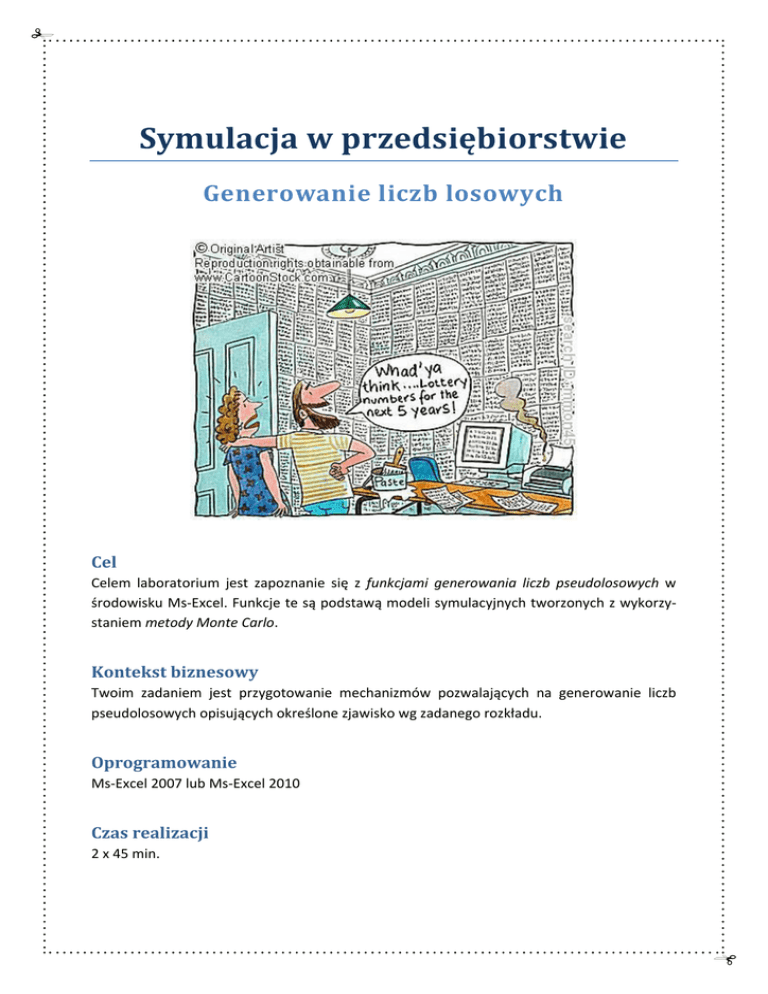 Symulacja w przedsiębiorstwie Generowanie liczb losowych