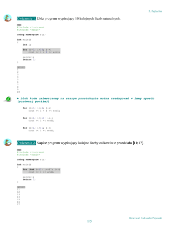 1/5 Ćwiczenie 1. Ułóż program wypisujący 10 kolejnych liczb