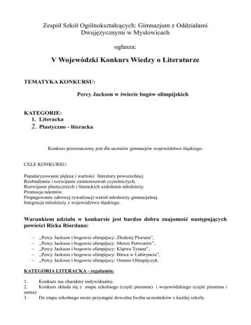 V Wojewódzki Konkurs Wiedzy o Literaturze "Percy Jackson w