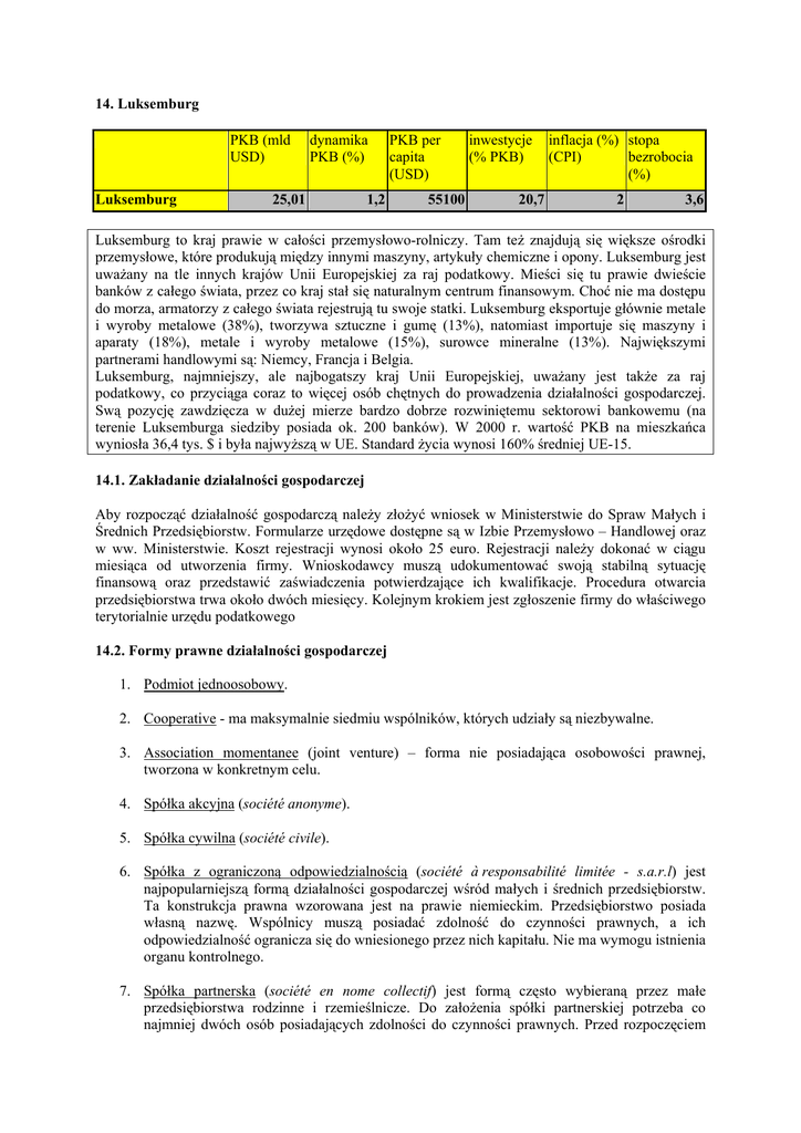 14. Luksemburg PKB - Staropolska Izba Przemysłowo Handlowa