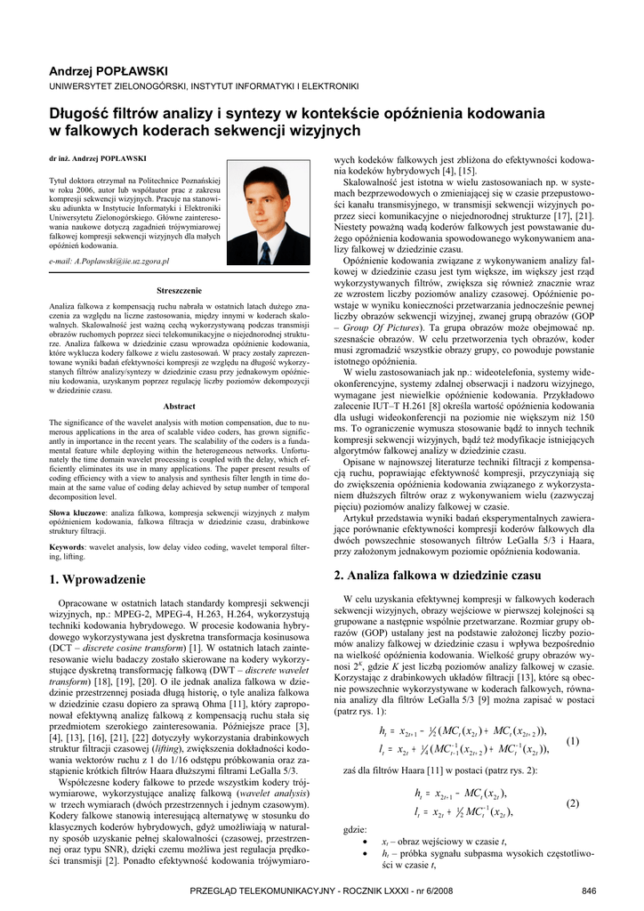 Długość filtrów analizy i syntezy w kontekście opóźnienia