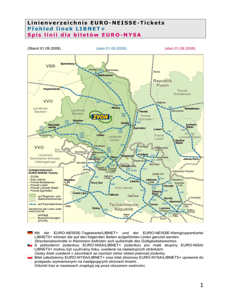 Linienverzeichnis EURO-NEISSE-Tickets Přehled linek