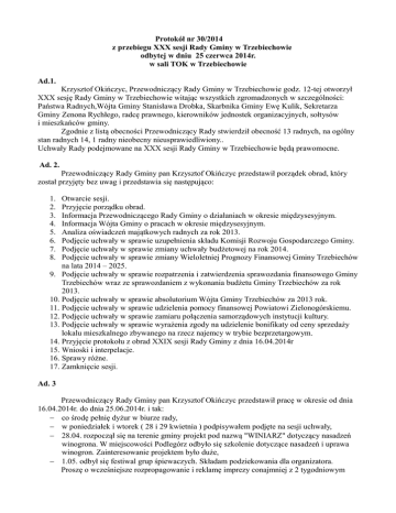 Protokół nr 30/2014 z przebiegu XXX sesji Rady
