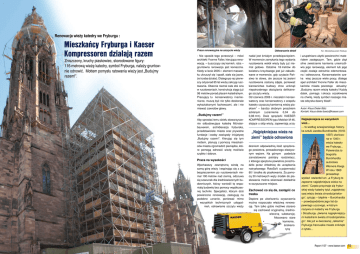 Renowacja wieży katedry we Fryburgu : Mieszkańcy Fryburga i Kaeser Kompressoren działają razem Zniszczony, kruchy piaskowiec, skorodowane figury: 116-metrową wieżę katedry, symbol Fryburga, należy gruntownie odnowić. Mottem pomysłu ratowania wieży jest „Budujmy razem!”. Prace renowacyjne na szczycie wieży - Nie sposób tego przeoczyć – mówi architekt Yvonne Faller, kierująca renowacją. – Łuszczący się kamień, rdza – gruntowna renowacja jest konieczna. Kiedy w lecie 2005 r. element maswerku ukruszył się i spadł, stało się jasne, że trzeba działać. Dlatego po raz pierwszy od ponad 85 lat wieżę zakryją rusztowania. Obecnie niemal cała stoi ona w rusztowaniach, konstrukcja sięga już 98 metrów ponad placem katedralnym. Pracujący tu konserwatorzy i kamieniarze, muszą być nie tylko doskonale wykształconymi fachowcami, ale i nie miewać zawrotów głowy. „Budujmy razem!” Aby sprostać temu dziełu stowarzyszenie odbudowujące katedrę Münsterbauverein, archidiecezja fryburska, przedstawiciele miasta oraz prywatne fundacje i osoby zawiązały inicjatywę „Budujmy razem!”. Kierując się tym mottem, planują z pomocą mieszkańców miasta zgromadzić pieniądze, które pomogą odnowić wieżę możliwie szybko i dobrze. Praca na wysokości Wjechawszy zewnętrzną windą na samą górę wieży i wspinając się z zabezpieczeniem po rusztowaniach niemal 100 metrów nad ziemią, odczuwa się szacunek dla średniowiecznych budowniczych, którzy wznieśli tę wspaniałą budowlę bez pomocy współczesnej techniki. Specjaliści, którym dziś powierzono renowację, zasługują na podobne uznanie, ponieważ mimo wszystkich technicznych udogodnień, odnawianie szczytu wieży Odtwarzanie detali nadal jest śmiałym przedsięwzięciem. W momencie zamykania tego wydania rusztowania wokół wieży były już niemal gotowe. Ostatnie 18 metrów do kwiatonu krzyżowego jest już zabudowane w momencie, gdy czytacie Państwo te słowa, ale jeszcze tej jesieni rusztowania zostaną zdjęte, ponieważ kierownictwo budowy chce uniknąć niepotrzebnego obciążania delikatnego szczytu wieży. Od czerwca 2006 r. niezależni konserwatorzy oraz konserwatorzy z zespołu katedry czyszczą kamienną wieżę piaskiem” – bardzo drobnym proszkiem szklanym (uziarnienie 0,04 do 0,08 mm). Dwie sprężarki KAESER KOMPRESSOREN typu Mobilair M 46, stojące u stóp wieży, zapewniają urzą- „Najpiękniejsza wieża na ziemi” będzie odnowiona dzeniom odpowiednią ilość sprężonego powietrza, prowadzonego elastycznym wężem. Na górnym podeście zainstalowano potrójny rozdzielacz, z którego sprężone powietrze przechodziło przez chłodnicę do urządzenia natryskowego RotoSoft o pojemności 60 l środka do piaskowania. Za pomocą 30 metrowych węży środek do piaskowania można skierować dokładnie w oczyszczane miejsce. Zachować co się da, zastąpić co trzeba Dopiero po ukończeniu czyszczenia można rozpoczęto właściwą renowację. Tam tylko gdzie możliwe starano się zachować oryginalną, średniowieczną substancję. Mocowano stare kamienie, ściskano rysy Fot.: Münsterbauverein Freiburg i uzupełniano ubytki powierzchni materiałem zastępczym. Tam, gdzie zbyt silne zwietrzenie kamienia uniemożliwia jego renowację, element lub jego część zostaje ostrożnie zdemontowana i odtworzona. Konserwatorów czeka więc jeszcze wiele pracy, dlatego apel architekt Yvonne Faller do mieszkańców miasta pozostaje aktualny: „Budujmy razem wieżę katedry! Każdy datek, pomaga i skraca oczekiwanie na chwilę, kiedy symbol naszego miasta odzyska dawny blask”. Autor: Klaus Dieter Bätz Kontakt: [email protected] Najpiękniejsza ze wszystkich wież... ... to według szwajcarskiego historyka sztuki Jacoba Burckhardta (18181897) ukończona w 1340 r. wieża katedry we Fryburgu.. Potwierdza to biografia Burckhardta autorstwa Wernera Kaegi. W roku 1869 prowadząc wykład stwierdził on: „a Fryburg to zapewne najpiękniejsza wieża na ziemi.” Często przyznaje się fryburskiej wieży katedry tytuł „najpiękniejszej wieży świata chrześcijańskiego“, cytując – błędnie – Burckhardta – prawdopodobnie jego list do pewnego uczonego, w którym nazywa on katedry we Fryburgu i Strasburgu „dwiema najpiękniejszymi katedrami świata chrześcijańskiego”. Ale już w ówczesnej „reklamie” Fryburga francuskie miasto zniknęło z cytatu... Report 1/07 - www.kaeser.com 15