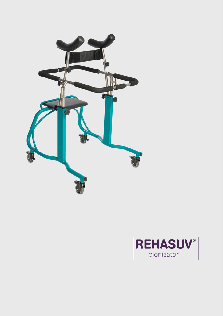 REHASUV pionizator REHASUV® pionizator Lekki, bardzo mobilny i wykonany z bardzo wytrzymałych materiałów pionizator dynamiczny. Standardowo wyposażony w składane siodełko, z którego można skorzystać w każdej chwili. Doskonały dla osób, które rozpoczynają proces nauki chodu jak również dla tych, którzy potrzebują pomocy w poruszaniu się na co dzień. Dzięki szerokiemu wachlarzowi akcesoriów pionizator REHASUV® świetnie sprawdza się u osób z niewielkimi zaburzeniami motoryki jak i dla tych z poważnymi jej deficytami. Koła z hamulcem ciernym pozwalają na pełną kontrolę pionizatora REHASUV®, a uprząż stabilizująca miednicę daje dodatkowe poczucie bezpieczeństwa. Chroni także przed upadkiem. Dostępny w 3 rozmiarach dla dzieci, młodzieży i dorosłych. ZALECANY DLA OSÓB, U KTÓRYCH ROZPOZNANO: •• Mózgowe porażenie dziecięce – różne postacie. •• Uszkodzenia mózgu i rdzenia kręgowego o różnej etiologii z niedowładami kończyn, ciężkimi zaburzeniami równowagi i koordynacji ruchów. •• Choroby demielinizacyjne (stwardnienie rozsiane, stwardnienie zanikowe boczne i inne). •• Przepuklinę oponowo-rdzeniową. •• Choroby mięśni przebiegające z niedowładami i porażeniami. •• Zespoły genetyczne przebiegające z niedowładami kończyn. •• Choroby reumatyczne •• Inne choroby przebiegające z niedowładami, porażeniami, uszkodzeniami w zakresie narządu ruchu. •• Po przebytych urazach czaszkowo mózgowych lub urazach kręgosłupa z uszkodzeniem rdzenia kręgowego z niedowładami i porażeniami WYPOSAŻENIE STANDARDOWE: Stelaż z kołami jezdnymi wyposażonymi w hamulce – z tyłu dodatkowo hamulce oporowe | Siedzisko | Zamykany pochwyt | Pas piersiowy | Podpórki pod pachy niskie Akces-MED sp. z o.o. Jasionka 955B 36-002 JASIONKA Odcienie kolorystyczne mogą różnić się od prezentowanych na zdjęciach. Producent zastrzega sobie prawo do zmian w wyrobach, bez aktualizacji katalogu. Zawsze aktualna oferta na naszej stronie internetowej. [email protected] tel. +48 (17) 864 04 70 www.akces-med.com 01/2015 REHASUV® pionizator SZCZEGÓLNE ZALETY: Stabilna konstrukcja Łatwa obsługa Samodzielność Gwarancja 24 miesiące Urządzenie zapewnia właściwą stabilizację i bezpieczeństwo użytkownika. Istnieje możliwość samodzielnej pionizacji lub przemieszczania się w urządzeniu. Ciche koła z hamulcem. Intuicyjny sposób regulacji oraz prosty montaż. Na produkt udzielamy 24 miesięcznej gwarancji. Zapewniamy również serwis pogwarancyjny. Szeroki zakres regulacji kąta pochylenia podpaszek pozwala na idealne dopasowanie produktu do użytkownika Pacjent może usiąść na zintegrowanym z konstrukcją pionizatora uchylnym siedzisku. KOLORYSTYKA Rozmiar 1 Rozmiar 2 Rozmiar 3 Akces-MED sp. z o.o. Jasionka 955B 36-002 JASIONKA Odcienie kolorystyczne mogą różnić się od prezentowanych na zdjęciach. Producent zastrzega sobie prawo do zmian w wyrobach, bez aktualizacji katalogu. Zawsze aktualna oferta na naszej stronie internetowej. [email protected] tel. +48 (17) 864 04 70 www.akces-med.com 01/2015 REHASUV® tabele pomiarowe C2 C1 C A Symbol Pomiar Jednostka Rozmiar 1 Rozmiar 2 Rozmiar 3 A Szerokość pochwytu [cm] 31 40 46 C Wysokość podpaszek* [cm] 83-106 104-139 125-159 C1 Wysokość pochwytu [cm] 64-79 78-110 91-122 C2 Wysokość siedziska [cm] 45 50 56 Max. waga użytkownika [kg] 30 55 95 Rozmiar 1 Rozmiar 2 Rozmiar 3 Wymiary i waga sprzętu Szerokość [cm] 57 66 78 Długość [cm] 73 77 77 Wysokość [cm] 82 104 125 Waga [kg] 13,5 16 17,5 UWAGA: Tolerancja wymiarów zawartych w tabeli wynosi +/- 1 cm. *przy pionowym ustawieniu pelot Akces-MED sp. z o.o. Jasionka 955B 36-002 JASIONKA Odcienie kolorystyczne mogą różnić się od prezentowanych na zdjęciach. Producent zastrzega sobie prawo do zmian w wyrobach, bez aktualizacji katalogu. Zawsze aktualna oferta na naszej stronie internetowej. [email protected] tel. +48 (17) 864 04 70 www.akces-med.com 01/2015 REHASUV® akcesoria Bezpieczeństwo Pas do przenoszenia chorych Solidna i ergonomiczna budowa oraz duża wytrzymałość ułatwia opiekunowi codzienną pielęgnację chorego. Stabilizacja Podpórki pod przedramiona Podpórki pod pachy wysokie Doskonale sprawdzają się u osób z ograniczoną kontrolą górnej części ciała, zapewniając dodatkową stabilizację boczną. Możliwość zamówienia jednej lub dwóch podpórek. Stanowią dodatkową stabilizację tułowia dzięki długim podporą. Sprawdzają się u osób ze słabą kontrolą górnej części ciała. Uprząż stabilizująca miednicę Orteza kończyny dolnej z policentryczną regulacją zakresu ruchomości co 20 stopni AM-KD-AM/2R (2 szt.) Mocowana jest z obu stron do obejmy biodrowej urządzenia. Dzięki systemowi pasków zapewnia odpowiednią stabilizację obręczy miednicznej. Zabezpiecza także użytkownika przed upadkiem. Orteza na goleń i udo z regulacją zakresu ruchomości co 15 stopni AM-KD-AM/1R (2 szt.) Dynamiczny aparat na opadającą stopę korygująca zaburzenia osiowe w płaszczyźnie czołowej AM-ASS-OS (2 szt.) Orteza kończyny dolnej z policentrycznym zakresem ruchomości co 20 stopni i dynamiczną stopą z włókna węglowego AM-KDS-AM/2R (2 szt.) Orteza kończyny dolnej obejmująca obręcz biodrową i staw kolanowy z regulowanym zakresem ruchomości w stawach OKD-14 (2 szt.) Mobilna orteza kończyny dolnej OKD-13 (2 szt.) Dynamiczna orteza wspomagająca unoszenie kończyny dolnej OKD-10 (2 szt.) Orteza unieruchamiająca kończynę dolną. AM-TUD-KD (2 szt.) Orteza unieruchamiająca kończynę dolną z dodatkową kapą kolana AMTUD-KD-02 (2 szt.) Modułowa orteza unieruchamiająca kończynę dolną AM-TUD-KD-03 (2 szt.) Orteza na goleń i udo z policentryczną regulacją ruchomości co 20 stopni i kapą kolana AM-KD-AM/2R-02 (2 szt.) Akces-MED sp. z o.o. Jasionka 955B 36-002 JASIONKA Odcienie kolorystyczne mogą różnić się od prezentowanych na zdjęciach. Pr