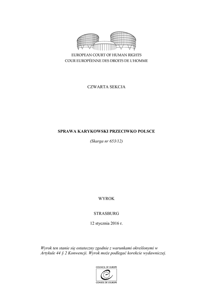 CZWARTA SEKCJA SPRAWA KARYKOWSKI PRZECIWKO POLSCE