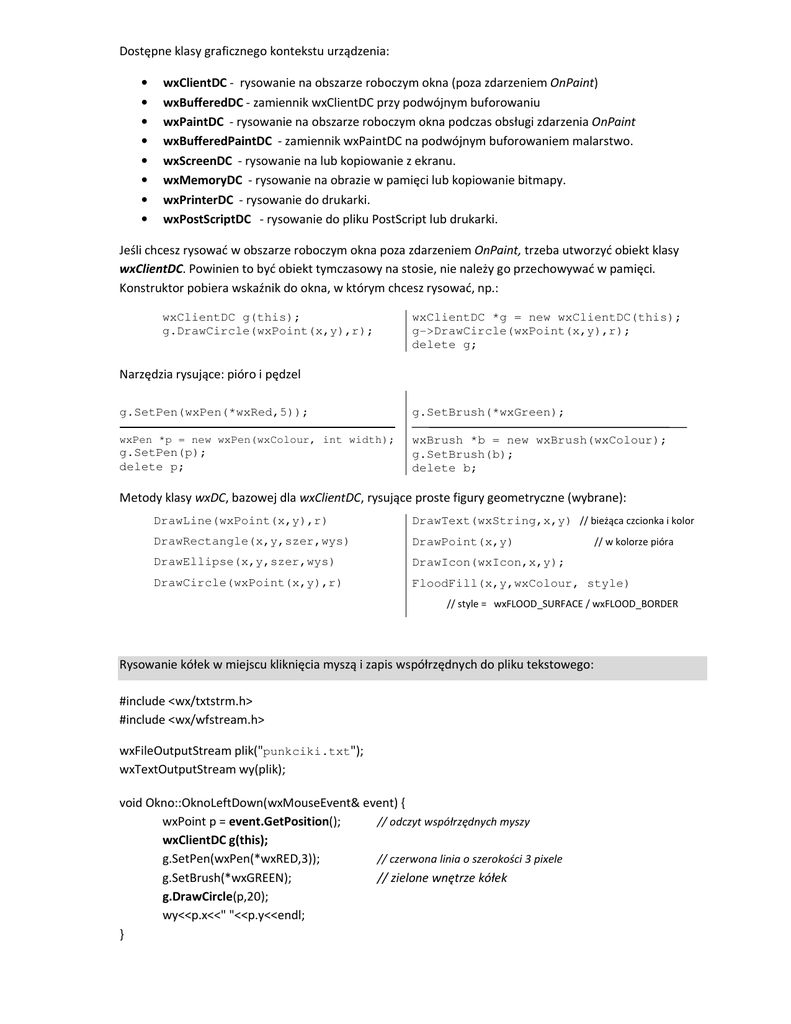 wxPaintDC - rysowanie na obszarze roboczym okna podczas obsługi zdarzenia OnPaint