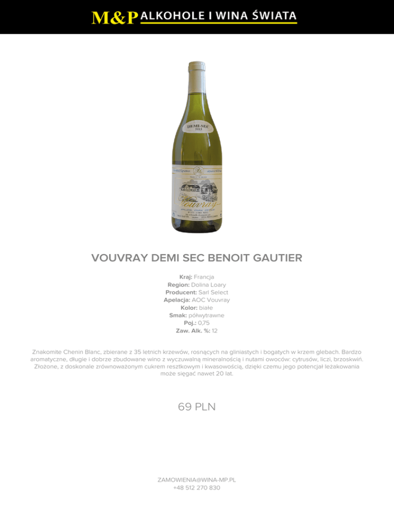 VOUVRAY DEMI SEC BENOIT GAUTIER 69 PLN