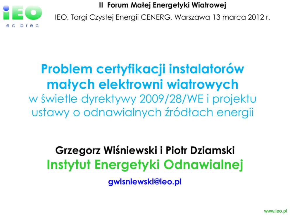 Problem certyfikacji instalatorów małych elektrowni wiatrowych w