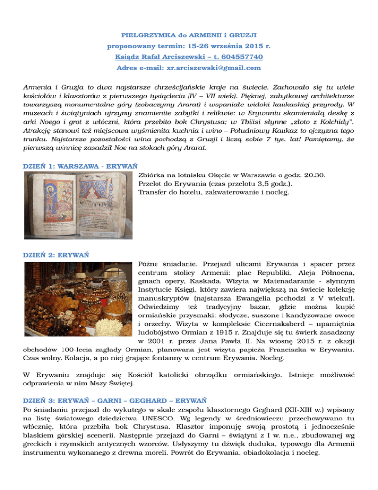 PIELGRZYMKA do ARMENII i GRUZJI proponowany termin: 15