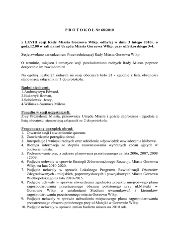 Protokół z LXVIII sesji Rady Miasta odbytej w dniu 3 lutego