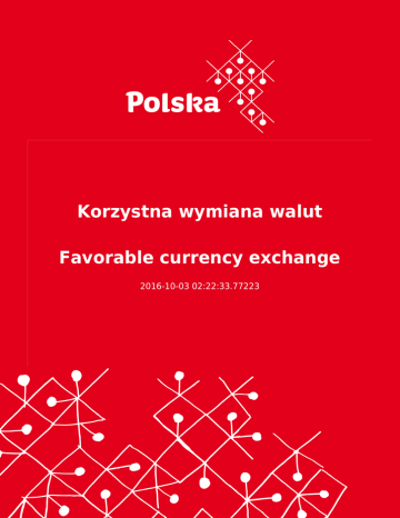 Korzystna wymiana walut Favorable currency exchange 2016-10-03 02:22:33.77223 2 Ta oferta nie stanowi informacji handlowej Adres instytucji/firmy ogłaszającej ofertę Igoria Trade S.A. 02-707 Warszawa, Puławska 111A 109, Polska Osoba kontaktowa Benedykt Karcz [email protected] Tel: +48 884884813 igoriatrade.com Opis przedmiotu zamówienia Trejdoo.com to największa platforma finansowa dostarczająca rozwiązania i usługi dla Klientów biznesowych i indywidualnych. Właścicielem platformy jest Igoria Trade S.A, która jest notowana na Giełdzie Papierów Wartościowych w Warszawie na rynku NewConnect i nadzorowana przez Komisję Nadzoru Finansowego. Jesteśmy również europejską Instytucją Płatniczą posiadającą zezwolenia do świadczenia usług płatniczych w 31 krajach w Europie. Trejdoo.com udostępnia w łatwy i bezpieczny sposób następujące usługi: - WYMIANA WALUT ONLINE Atrakcyjne kursy walut online Wymiana walut online bez spreadu Możliwość negocjacji kursu w kantorze walutowym Usługa dostępna online 24/7 - REZERWACJA KURSÓW Zabezpieczenie ryzyka walutowego w przyszłości Gwarancja wymiany po z góry ustalonym kursie PRZELEWY PIENIĘŻNE MIĘDZYNARODOWE I KRAJOWE Bez rachunku walutowego i z niską opłatą za przekaz Szybko i bez wychodzenia z domu, dostęp online i 24/7 Bezpieczeństwo transakcji gwarantuje Europejska Instytucja Płatnicza - RACHUNEK WALUTOWY IBAN 26 cyfrowy indywidualny numer rachunku Dostępny w PLN, EUR, USD, CHF, GBP i NOK Rachunek do przyjmowania wpłat od osób trzecich Łatwy i szybki dostęp do środków pieniężnych Przewalutowania bez spreadu Płatności 3 krajowe i zagraniczne - RACHUNEK POWIERNICZY ESCROW Gwarancja zdeponowanych środków pieniężnych Ograniczone ryzyko braku zapłaty za zrealizowaną usługę lub przekazany towar Niski koszt: bez opłat pośrednika Usługa dostępna online i 24/7 - KARTA WALUTOWA PREPAID Brak ryzyka kursowego Bez kosztów przewalutowania w banku Pełna kontrola nad wydatkami Możliwość wielokrotnego doładowania Dostępna w 3 walutach EUR, USD i GBP. ZAREJESTRUJ SIĘ już teraz na Trejdoo.com i korzystaj z pełnej oferty platformy finansowej. https://trejdoo.com/362,rejestracja.htm Nabywcy z zagranicy ● ● ● ● ● ● ● ● ● ● ● ● ● ● ● ● ● ● ● ● ● ● ● ● ● ● Algieria Angola Argentyna Australia Austria Belgia Białoruś Bośnia i Hercegowina Botswana Brazylia Brytyjskie Terytorium Oceanu Indyjskiego Brytyjskie Wyspy Dziewicze Bułgaria Burkina Faso Burundi Chiny Chorwacja Cypr Czarnogóra Czechy Dania Demokratyczna Republika Konga Egipt Estonia Etiopia Finlandia 4 ● ● ● ● ● ● ● ● ● ● ● ● ● ● ● ● ● ● ● ● ● ● ● ● ● ● ● ● ● ● ● ● ● ● ● ● ● ● ● Francja Gibraltar Grecja Gruzja Gwinea Bissau Hiszpania Hongkong Indie Indonezja Irlandia Irlandia Płn. Islandia Japonia Kanada Katar Kazachstan Kenia Kolumbia Królestwo Niderlandów Księstwo Andory Lesotho Litwa Luksemburg Łotwa Madagaskar Madera Majotta Malawi Mali Maroko Mauritius Mołdawia Monako Mozambik Namibia Niemcy Norfolk Norwegia Nowa Zelandia 5 ● ● ● ● ● ● ● ● ● ● ● ● ● ● ● ● ● ● ● ● ● ● ● ● ● ● ● ● ● ● ● ● ● Paragwaj Polska Portugalia Republika Południowej Afryki Republika Tadżykistanu Reunion Rosja Rumunia Rwanda Serbia Seszele Słowacja Słowenia Suazi Sudan Szwajcaria Szwecja Tajlandia Tajwan Tunezja Turcja Turkmenistan Uganda Ukraina USA Węgry Wielka Brytania Wietnam Włochy Wyspy Owcze Zambia Zimbabwe Zjednoczone Emiraty Arabskie CPV ● Usługi bankowe i inwestycyjne 6 Typ oferty Sprzedaż Termin składania ofert 01.04.2017 Ważna od 03.10.2016 Branże Zdrowie i medycyna Doradztwo/consulting/edukacja Handel IT/ICT Usługi finansowe Wydawnictwa Fotografia Muzyka Film Rzemiosło artystyczne Wzornictwo i projektowanie mody Media i reklama Sektor kreatywny Organizacja targów i wydarzeń Turystyka, sport i rekreacja Transport i logistyka Architektura 7 Budownictwo Budownictwo i architektura Ochrona środowiska Energia i surowce odnawialne Pozostałe wyroby Gry i zabawki Sprzęt sportowy Instrumenty muzyczne Pozostałe branże Przemysł jubilerski Wyposażenie wnętrz Drzwi i okna Meble Produkcja mebli Pozostały sprzęt transportowy Przemysł lotniczy i kosmiczny Pojazdy szynowe Statki i łodzie Części i akcesoria samochodowe Pozostałe pojazdy samochodowe Autobusy Samochody osobowe Produkcja środków transportu Narzędzia mechaniczne Produkcja pozostałych maszyn Maszyny dla przemysłu papierniczego Maszyny dla przemysłu odzieżowego Maszyny dla przetwórstwa spożywczego 8 Maszyny dla górnictwa i budownictwa Maszyny dla metalurgii Maszyny dla rolnictwa i leśnictwa Maszyny ogólnego przeznaczenia Pozostały sprzęt elektryczny AGD Oświetlenie Pozostałe wyroby elektroniczne i optyczne Instrumenty optyczne i sprzęt fotograficzny Sprzęt medyczny/rehabilitacyjny Aparatura pomiarowa i zegarki Elektronika użytkowa Komputery Maszyny i urządzenia Wojskowe pojazdy bojowe Broń i amunicja Przemysł obronny i zbrojeniowy Produkcja metalowych wyrobów gotowych Produkcja metali nieżelaznych Produkcja metali żelaznych Produkcja i przetwórstwo metali Biotechnologia Przemysł farmaceutyczny Farmacja i biotechnologia Przemysł petrochemiczny Wyroby z gumy i tworzyw sztucznych Pozostałe wyroby chemiczne Kosmetyki 9 Farby i lakiery Pestycydy Wyroby chemiczne w formach podstawowych Przemysł chemiczny i kosmetyczny Poligraficzne Papier Wyroby z drewna (bez mebli) Przemysł drzewny i papierniczy Pozostałe tekstylia Dywany i dekoracje Tekstylia Wyroby skórzane Odzież i obuwie Odzież, tekstylia, wyroby skórzane Produkty tytoniowe Napoje alkoholowe Pozostałe produkty spożywcze Kawa, herbata i przyprawy Słodycze Wyroby mleczarskie Oleje i tłuszcze spożywcze Wyroby zbożowe, piekarske i mączne Wyroby z warzyw i owoców Wyroby z mięsa i ryb Przetw
