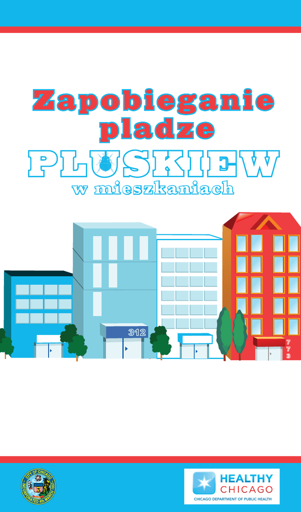 Zapobieganie pladze w mieszkaniach CHICAGO DEPARTMENT OF PUBLIC HEALTH Pluskwy mogą występować w domach, mieszkaniach, hotelach, szkołach, domach studenckich, schroniskach, biurach oraz w innych miejscach. Niniejsza broszura zawiera informacje na temat pluskiew oraz wytyczne, co należy zrobić, gdy w mieszkaniu występują pluskwy lub istnieje takie podejrzenie. Omówiono tu również prawa i obowiązki lokatorów. Dlaczego niniejsza broszura jest udostępniania lokatorom? W 2013 roku Rada Miasta Chicago uchwaliła zarządzenie w odpowiedzi na rosnące problemy związane z plagą pluskiew. Zgodnie z tym zarządzeniem właściciele lokali jak i ich lokatorzy są zobowiązani do zapobiegania i kontrolowania plagi pluskiew. Ponadto właściciele lokali są zobowiązani do przekazania lokatorom broszury informacyjnej na temat pluskiew. Niniejsza broszura informacyjna opracowana przez Departament Zdrowia Publicznego Miasta Chicago (Chicago Department of Public Health) ma być pomocna w spełnieniu tego wymogu. Co to są pluskwy? Pluskwy to małe, płaskie pozbawione skrzydeł owady. Żywią się krwią i mogą być bardzo uciążliwe dla ludzi. Zazwyczaj gnieżdżą się w materacach lub w innych częściach łóżka. *Rzeczywiste rozmiary dorosłej pluskwy. Jak wyglądają pluskwy? Dorosła pluskwa przypomina rozmiarem, kształtem i kolorem pestkę jabłka: długość 1/4 cala i jasnobrązowy lub brunatny kolor. Niedojrzałe formy pluskwy są mniejsze i jaśniejsze. Jaja pluskwy są bardzo małe i białe. Dojrzałe formy można dostrzec gołym okiem, natomiast niedojrzałe formy lub jaja mogą być widoczne dopiero przez szkło powiększające. Na stronie internetowej podanej na końcu niniejszej broszury zamieszczone są zdjęcia pluskiew. Gdzie gnieżdżą się pluskwy? Pluskwy są obecne wszędzie tam, gdzie człowiek śpi, siedzi lub kładzie się. Występują na materacach oraz w skrzyniach sprężynowych, szczególnie w pobliżu lamówek, szwów i metek, oraz w pęknięciach, a także szczelinach w ramie łóżka i wezgłowiu. Gnieżdżą się również w innych meblach, zwłaszcza w okolicach szwów i suwaków krzeseł i kanap, w fałdach zasłon, w złączeniach szuflad, w obudowach gniazdek elektrycznych, pod obrazami oraz w innych ciasnych miejscach. 1 W jaki sposób pluskwy mogą dostać się do mieszkania? Pluskwy mogą zostać wniesione do mieszkania na materacach lub z pościelą, na meblach, ubraniach oraz w bagażu. Gdy znajdą się już w mieszkaniu, mogą przemieszczać się pomiędzy pokojami lub przedostać się do innego mieszkania poprzez niewielkie pęknięcia lub otwory w ścianach lub na sufitach bądź pod drzwiami. Pluskwy nie mają skrzydeł, więc nie mogą wlecieć do mieszkania ani w nim latać. W jaki sposób można zapobiegać dostawaniu się pluskiew do mieszkania? Pluskwy występują praktycznie wszędzie, więc ZAWSZE należy bacznie obserwować otoczenie. Przed dokonaniem zakupu należy zawsze sprawdzać meble oraz pościel, w szczególności używane, pod kątem oznak występowania pluskiew. NIGDY nie należy wnosić do mieszkania przedmiotów wyrzuconych przez kogoś innego, gdyż mogą być one siedliskiem pluskiew. Po powrocie do domu z podróży na terenie Stanów Zjednoczonych lub podróży zagranicznej, należy ZAWSZE dokładnie sprawdzić bagaż przed wniesieniem go do mieszkania. Co jeszcze można zrobić, aby uchronić się przed plagą pluskiew? Zmniejszyć ilość przedmiotów zagracających mieszkanie, szczególnie w sypialniach. Przechowywać nieużywane przedmioty w szczelnie zamykanych pojemnikach lub torebkach plastikowych. Często prać i suszyć pościel. Sprawdzać łóżka i meble pod kątem ewentualnych oznak występowania pluskiew. Zakupić pokrowce na materace i skrzynie sprężynowe. Czy pluskwy przenoszą choroby? Nie stwierdzono jeszcze przenoszenia chorób przez pluskwy. Czy pluskwy mogą być szkodliwe dla zdrowia? Tak. Podobnie jak w przypadku innych owadów ich ugryzienia mogą wywoływać reakcje alergiczne, zaczerwienie oraz swędzenie. Ich obecność wywołuje u ludzi uczucie zaniepokojenia i niewysypianie się. Po czym można poznać, że w mieszkaniu zagnieździły się pluskwy? Same ugryzienia są dość słabym wyznacznikiem plagi pluskiew, gdyż nie wszyscy na nie reagują lub mogą one wynikać z czegoś innego. Najlepiej poszukać fizycznych oznak obecności pluskiew, takich jak żywe lub martwe pluskwy, jaja lub skorupki jaj lub niewielkie ciemne lub brunatne plamki na materacach lub w innych miejscach, gdzie gnieżdżą się pluskwy. 2 Co należy zrobić w przypadku podejrzenia, że w mieszkaniu zagnieździły się pluskwy? Zgodnie z tym zarządzeniem lokatorzy MUSZĄ niezwłocznie skontaktować się z właścicielem lokalu telefonicznie, a następnie pisemnie. Lokatorzy NIE POWINNI podejmować prób pozbycia się pluskiew z zastosowaniem środków chemicznych, „bomb zamgławiających” lub pestycydów, gdyż są to metody nieskuteczne, a mogą być szkodliwe dla zdrowia lokatorów, ich rodzin oraz sąsiadów. Po poinformowaniu właściciela lokalu należy poczekać na dodatkowe instrukcje od właściciela oraz specjalistów ds. zwalczania szkodników. Niezwłoczne powiadomienie oraz działania mające na celu zwalczanie szkodników pomogą w zapobieganiu przed rozprzestrzenianiem się pluskiew. Czy należy pozbyć się pościeli, ubrań oraz innych materiałów, które mogą być zapluskwione? Prawdopodobnie nie ma konieczności wyrzucania takich przedmiotów, chyba że specjalista ds. zwalczania szkodników uzna inaczej. W razie konieczności wyrzucenia takich przedmiotów, należy je usuwać w szczelnie zamkniętych plastikowych torbach, aby zapobiec dalszemu rozprzestrzenianiu się pluskiew. Zgodnie z treścią zarządzenia recykling zapluskwionych materiałów jest zabroniony, a wszelkie takie materiały muszą być usuwane w szczelnie zamkniętych plastikowych torbach z odpowiednio oznaczoną etykie
