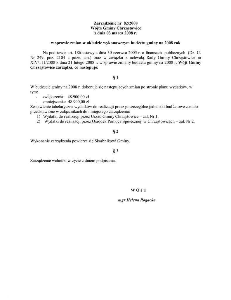 Zarządzenie nr 82/2008 Wójta Gminy Chrząstowice z dnia 03 marca