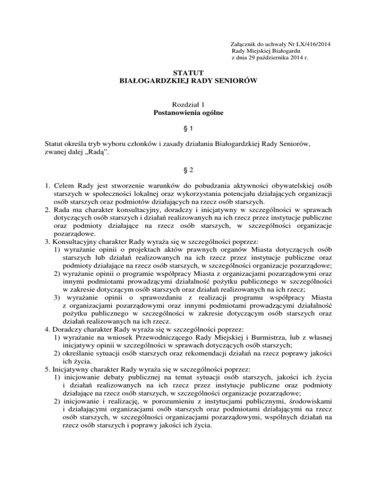 STATUT BIAŁOGARDZKIEJ RADY SENIORÓW Rozdział 1