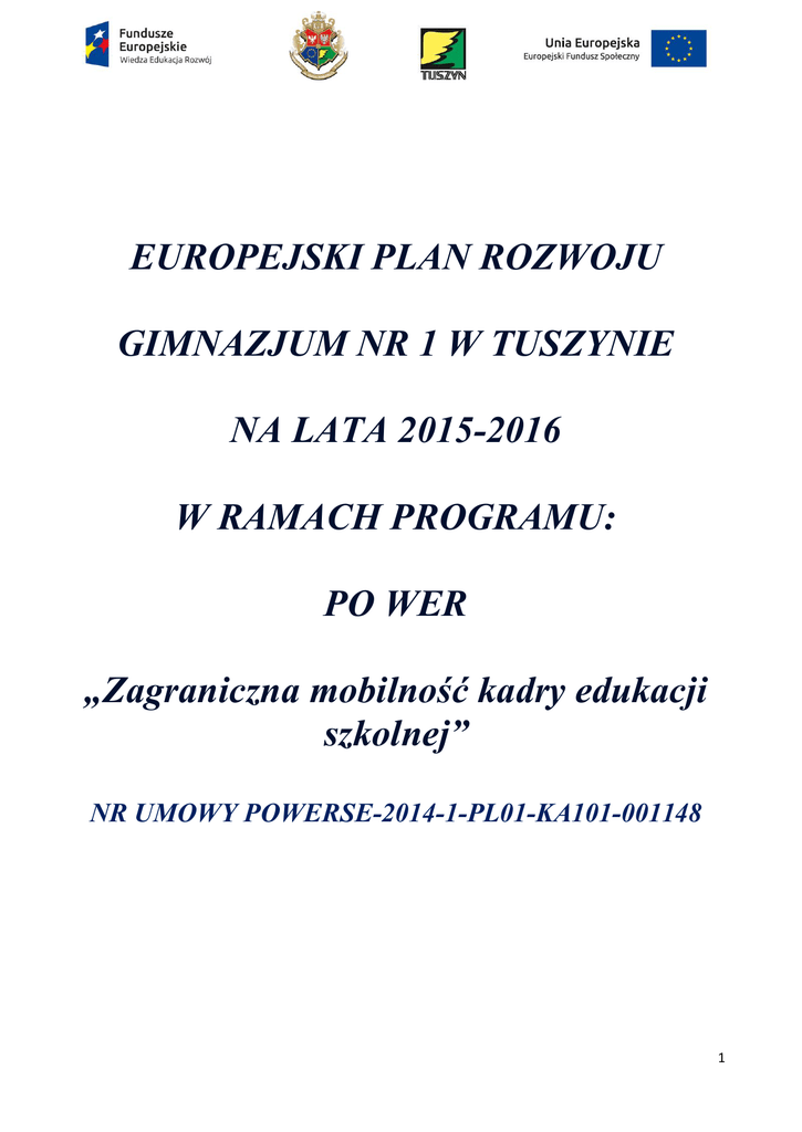 EUROPEJSKI PLAN ROZWOJU GIMNAZJUM NR 1 W TUSZYNIE
