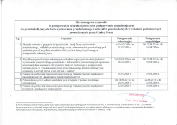 Harmonogram czynności w postępowaniu rekrutacyjnym
