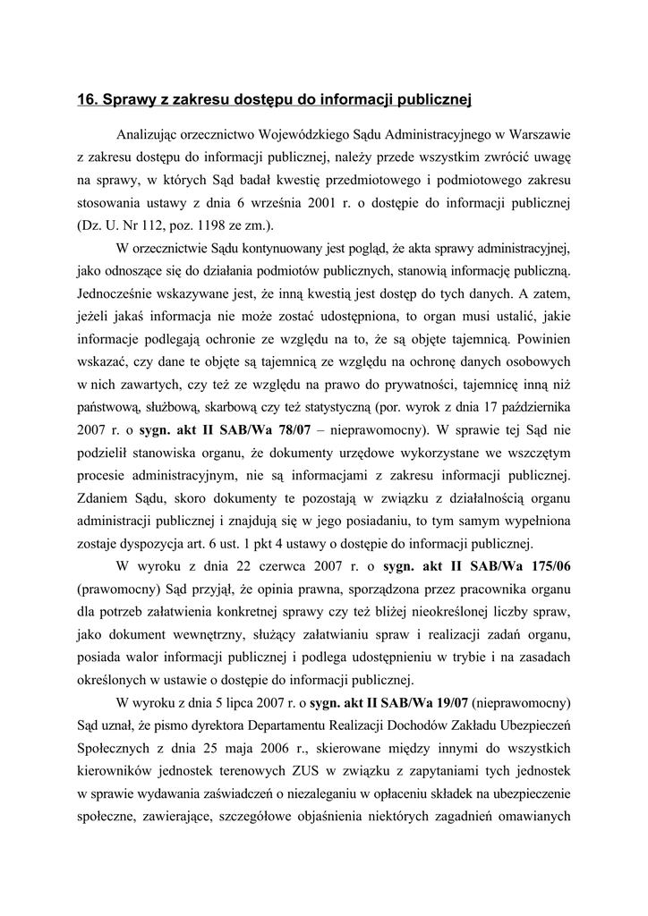 16. Sprawy z zakresu dostępu do informacji publicznej