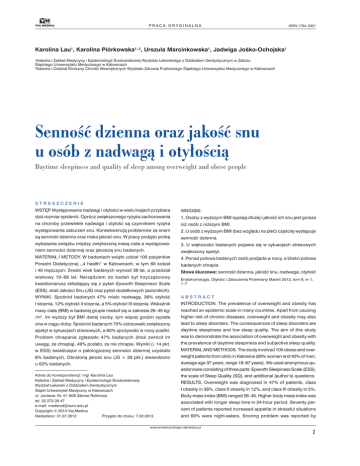 Senność dzienna oraz jakość snu u osób z nadwagą i otyłością