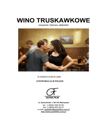 WINO TRUSKAWKOWE reżyseria: Dariusz Jabłoński W KINACH 8 MAJA 2009 DYSTRYBUCJA W POLSCE ul. Zamenhofa 1, 00-153 Warszawa tel.: (+4822) 536 92 00, fax: (+4822) 635 20 01 e-mail: [email protected] http://www.gutekfilm.com.pl WINO TRUSKAWKOWE reżyseria Dariusz Jabłoński scenariusz Andrzej Stasiuk, Dariusz Jabłoński na podstawie Opowieści galicyjskich Andrzeja Stasiuka zdjęcia Tomasz Michałowski muzyka Michał Lorenc montaż Krzysztof Szpetmański PSM dźwięk Bartlomiej Woźniak scenografia František Lipták kostiumy Agata Culak, Małgorzata Gwiazdecka charakteryzacja Anna Hrošsová występują Jiří MACHÁČEK jako Andrzej Zuzana FIALOVÁ jako Lubica Marian DZIĘDZIEL jako Kościejny Mieczysław GRĄBKA jako Sierżant Jerzy RADZIWIŁOWICZ jako Ksiądz Maciej STUHR jako Janek Marek LITEWKA jako Zalatywój Lech ŁOTOCKI jako Lewandowski Maria CIUNELIS jako Barmanka Cezary KOSIŃSKI jako Edek producent Dariusz JABŁOŃSKI, Violetta KAMIŃSKA, Izabela WÓJCIK produkcja APPLE FILM PRODUCTION w koprodukcji z Trigon Production (Słowacja),Telewizją Polską S.A. oraz CANAL+ współfinansowanie: Polski Instytut Sztuki Filmowej, Eurimages , Ministerstwo Kultury Republiki Słowackiej Polska, 2008 czas trwania: 109 minut 2 SYNOPSIS Realizm magiczny połączony z subtelnym poczuciem humoru w ekranizacji Opowieści galicyjskich Andrzeja Stasiuka, z udziałem znanych i lubianych polskich i czeskich aktorów: Jiríego Macháčka (Samotni), Macieja Stuhra (33 sceny z życia), Mariana Dziędziela (Wesele) i Roberta Więckiewicza (Wszystko będzie dobrze). Wino truskawkowe wprowadza nas w magiczny świat prawdziwego środka Europy. Miłość, zbrodnia, pokuta są tu naturalnymi składnikami życia, tak jak pory roku, odlatujące ptaki czy szum górskiego potoku. Główny bohater Andrzej, porzuca wielkomiejskie życie i przenosi się na galicyjską prowincję, aby tam odnaleźć wewnętrzny spokój i harmonię. Mała mieścina, w jakiej się znalazł, rządzi się swoimi niezmiennymi prawami. Komendant policji od lat jest tu ciągle ten sam, mężczyźni przesiadują w knajpie nad kuflem piwa, a w niedzielę wszyscy idą na mszę. Jest też lokalna piękność, Słowaczka Lubica, w której kocha się pół miasteczka, a ona kusi swymi wdziękami niczym Malena z filmu Giuseppe Tornatore. TWÓRCY O FILMIE Andrzej Stasiuk: „Film przypomina książkę. Właściwie teraz to już sam nie wiem, co według czego było robione. Darek Jabłoński ustawił kamerę w tych samych miejscach, w których wiele lat temu wymyśliłem Opowieści galicyjskie. W ten przedziwny sposób mogę dzisiaj oglądać własne wizje, własne myśli. I ta opowieść o miłości, śmierci i o pokutującym duchu została rozświetlona jakimś nieco nieziemskim blaskiem, cudownym blaskiem kina, który przypomina jednak jasność nadprzyrodzoną. Tym razem chyba udało się pokazać niewidzialne”. Dariusz Jabłoński: „To, co w Opowieściach galicyjskich mnie zafascynowało, to są postaci. Postaci, które mają niezwykłe losy, w obliczu tragedii zachowują godność, a ich filozofia życiowa pozwala im przetrwać życiowe burze. Ci ludzie żyją na ziemi, która oprócz swojego niespotykanego piękna kryje w sobie mnóstwo dramatów, o czym najlepiej świadczą rozsiane wszędzie krzyże i cmentarze – tu polski, tam łemkowski, austriacki, żydowski... Niektórzy tę ziemię nazywają Małymi Bałkanami. Tu powstała książka i tu kręciliśmy film. (...) To nie jest film do rozumienia, to jest film do myślenia, historia o tym, że każdy nas kiedyś zacznie szukać swoich źródeł życiowej mocy...”. 3 Zuzana Fialová: „Grana przeze mnie Lubica nie kieruje się w życiu żadnymi normami społeczeństwa archetypowego. Żyje w swoim własnym, wewnętrznym świecie, żyje tym, co czuje w danej chwili, tu i teraz. To osoba nosząca w sobie swoją własną wolność. Lubica jest bardzo słowiańska, tak jak słowiański jest cały ten film. Mówi o tym, co niewidoczne dla oczu, jest smutny i śmieszny jednocześnie, bohaterowie płaczą śmiejąc się i śmieją się przez łzy”. Maciej Stuhr: „Po raz pierwszy zdarzyło mi się grać w filmie, w którym czas przestał się liczyć, zszedł na dalszy plan i prawie zupełnie stracił znaczenie. Kręciliśmy przez cztery pory roku, zdjęcia miały inny rytm, najważniejsza stała się atmosfera i to chyba stanowi o wyjątkowości Wina truskawkowego. Cieszę się, że kręciliśmy tam, gdzie powstała książka, a potem scenariusz. Byliśmy w tych samych realiach i udało nam się poczuć to miejsce. W Dukli ginie „warszawski sprint”, panuje zupełnie inny rytm pracy a czas biegnie w swoim własnym tempie”. NAGRODY DLA FILMU 2008 - Tomasz Michałowski Września (Ogólnopolski Festiwal Sztuki Filmowej "Prowincjonalia")-Nagroda za zdjęcia 2008 - Michał Lorenc Września (Ogólnopolski Festiwal Sztuki Filmowej "Prowincjonalia")Nagroda za muzykę 2008 - Dariusz Jabłoński Września (Ogólnopolski Festiwal Sztuki Filmowej "Prowincjonalia")-Nagroda Dziennikarzy 2008 - Tomasz Michałowski Koszalin (Koszaliński Festiwal Debiutów Filmowych "Młodzi i Film")-nagroda za zdjęcia 2008 - Dariusz Jabłoński Koszalin (Koszaliński Festiwal Debiutów Filmowych "Młodzi i Film")-Nagroda Jury Młodzieżowego SYLWETKI TWÓRCÓW Dariusz Jabłoński - reżyseria Reżyser i producent, prezes Apple Film Production. Reżyseruje niezwykle rzadko, a jego największym osiągnięciem jest film dokumentalny Fotoamator, którego był również producentem. Fotoamator został nagrodzony na wielu najważniejszych światowych festiwalach. Jabłoński to absolwent Wydziału Reżyserii Filmowej i Telewizyjnej PWSFTViT w Łodzi. Pomysłodawca i organizator Polskich Nagród Filmowych oraz założyciel Niezależnej Fundacji Filmowej, powołanej dla promocji filmu polskiego i jego twórców w kraju i zagranicą. Członek Europejskiej Akademii Filmowej. Andrzej Stasiuk - scenariusz Pisarz, eseist