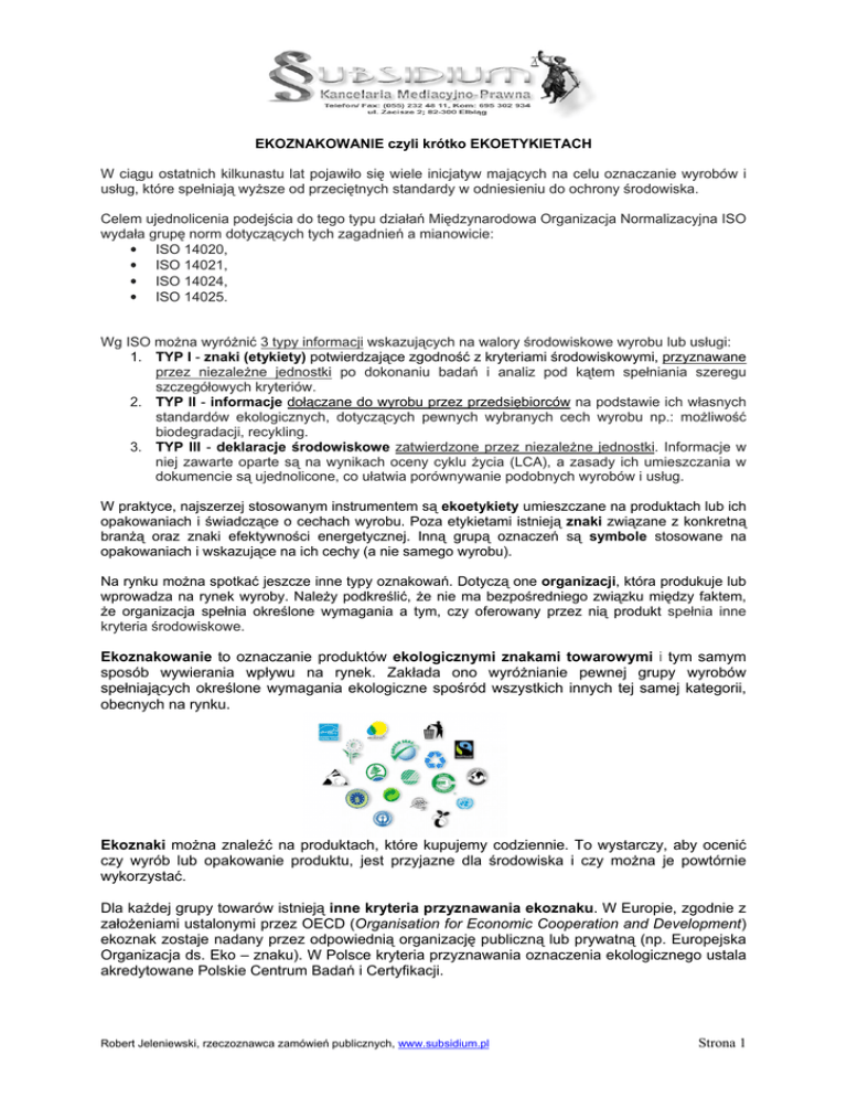 Strona 1 EKOZNAKOWANIE czyli krótko EKOETYKIETACH W ciągu