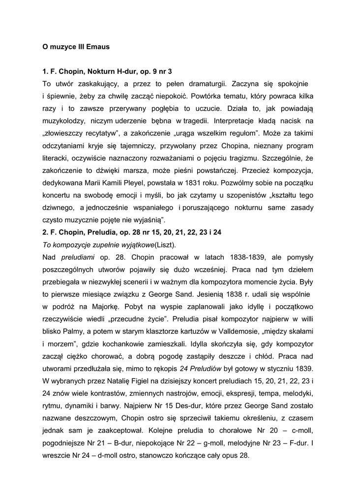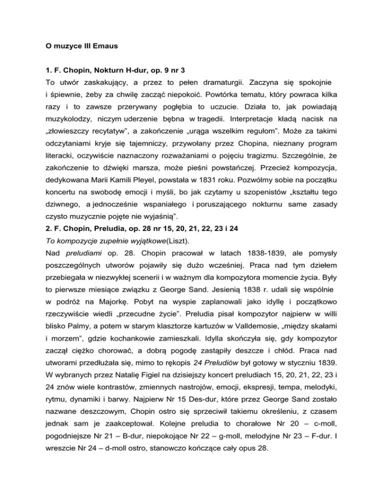 O muzyce III Emaus 1. F. Chopin, Nokturn H