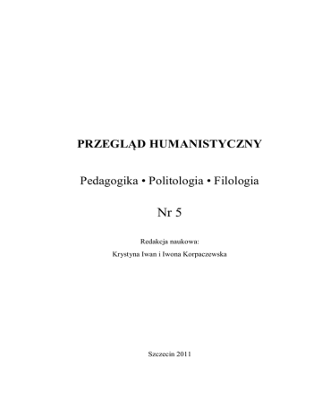 bbbbb PRZEGLĄD HUMANISTYCZNY Pedagogika • Politologia • Filologia Nr 5 Redakcja naukowa: Krystyna Iwan i Iwona Korpaczewska Szczecin 2011 -1- Kolegium Redakcyjne prof. zw. dr hab. Katarzyna Dziubalska – Kołaczyk (filologia), prof. zw. dr hab.Krystyna Iwan (filologia, pedagogika), prof. dr hab.Ewa Jackowska, (psychologia), prof. dr hab. Monika Jaworska–Witkowska (pedagogika), prof. dr hab. Robert Lew, (filologia), prof. dr hab.Nelly Łysenko (pedagogika), prof. dr hab. Janusz Mieczkowski (politologia), prof. dr hab. Józef Stanielewicz (ekonomia, historia), prof.dr hab. Regina Orzełek-Bujak (filologia) prof. dr hab Elżbieta Perzycka (pedagogika), prof. dr hab. Roman Zimny (pedagogika), prof. dr hab. Aleksandra Żukrowska (filologia, antropologia). Redakcja Dariusz Czekan XXXXXXXXXXXXXXXX Jerzy Kliszewski Tłumaczenie na język angielski Mgr Barbara Braid Projekt okładki Mgr Joanna Bylińska Korekta Marek Kowalik ISSN 2080-931X Wydawca Szczecińska Szkoła Wyższa Collegium Balticum Ul. Mieszka I 61 c 71-011 Szczecin Druk i oprawa volumina.pl Daniel Krzanowski ul. Ks. Witolda 7-9, 71-063 Szczecin [email protected] www.volumina.pl -2- bbbbb SPIS TREŚCI I PEDAGOGIKA Od redakcji .................................................................................... 7 1. Józefa Anna Pielka Postawy rodzicielskie i ich konsekwencje wychowawcze................ 12 2. Krzysztof Zdziarski Zaufanie w wychowaniu autorytarnym, liberalnym i humanistycznym .......................................................................... 33 3. Barbara Polak Kształtowanie postaw tolerancji ................................................... 47 4. Michał Mirowski, Joanna Koniusz Problematyka aktywności fizycznej dzieci i młodzieży w profilaktyce chorób układu krążenia .......................................... 65 5. Krzysztof Wódz Poczucie bezpieczeństwa uczniów w szkołach .............................. 83 6. Karolina Lachowicz Pomoc systemowa w ramach procedury Niebieskie Karty ............ 97 7. Elżbieta Błaszczyk-Kubielska, Wiesław W. Kubielski Pojęcie i istota efektywności kształcenia kursowego ...................... 111 8. Elżbieta Błaszczyk-Kubielska Opinie absolwentów kursów kwalifikacyjnych organizowanych przez zakłady pracy o ich przydatności do zawodu ........................ 119 II POLITOLOGIA 9. Ewelina Kochanek – Współczesne interpretacje bezpieczeństwa narodowego .................................................................................. 132 10. Grzegorz Pietrek – Administracja wojskowa w systemie zarządzania kryzysowego. Zarys istoty procesu współdziałania w sytuacjach kryzysowych ............................................................. 144 -3- 11. Antoni Strzymiński – Stres bojowy a terroryzm – profilaktyka stresu w wojsku ............................................................................. 156 12. Zbigniew Romek – Cenzura w PRL jako zorganizowany system .. 181 13. Waldemar Jaruszewski – Społeczeństwo światowe a bezpieczeństwo narodowe .......................................................... 216 III FILOLOGIA 14. Magdalena Dżaman-Dobrowolska – „Anglicyzmy w niemieckim słownictwie sportowym ................................................................. 242 15. Anna Nieroda-Kowal – Die DDR-spezifische Lexik in den polnischen Lehrbüchern der deutschen Sprache aus den achtziger Jahren am Beispiel von „Lernt mit uns“ (Teil 2)....................................... 249 16. Aleksandra Radzikowska – The process of Breaking as the manifestation of secondary place of articulation of Old English consonants............................................................. 270 IV KULTUROZNAWSTWO I HISTORIA 17. Alina Doroch – Atholl Highlanders as the last remaining private army in Europe ............................................................................. 310 18. Oleksandra Lysenko - Tуристичне краєзнавство україни : основні поняття та теоретико-методологічні засади ................. 322 19. Stanisław Kotlicki – Koszalin – zarys dziejów do drugiej wojny światowej ...................................................................................... 333 20. Waldemar Potkański – Eskalacja przemocy rewolucyjnej na przykładzie łodzi 1905 r. ...................................................................... 357 V Z PRAKTYKI POMOCY SPOŁECZNEJ 21. Elżbieta Żywucka-Kozłowska, Krystyna Bronowska – Dylematy, problemy, pytania. Rzeczywistość polskiej pomocy społecznej............ 376 -4- bbbbb LIST OF CONTENTS I PEDAGOGY 1. Józefa Anna Pielka – Parental attitudes and their consequences f or the upbringing ............................................... 12 2. Krzysztof Zdziarski – Trust in the upbringing in the authoritarian, liberal and humanistic education.......................... 33 3. Barbara Polak – Modelling tolerance ........................................ 47 4. Michał Mirowski, Joanna Koniusz – Physical activity of children and teenagers in the prevention of the cardiovascular diseases ... 65 5. Krzysztof Wódz - Students‟ sense of security in school .............. 83 6. Karolina Lachowicz - Systemic help by means of the Blue Card procedure ................................................................................... 97 7. E. Błaszczyk-Kubielska Wiesław W. Kubielski - The term and the issue of the effectiveness of the course education ................... 111 8. E. Błaszczyk-Kubielska - The opinion of the participants In the qualification courses organised by their workplaces about their vocational relevance .......................................................... 119 II POLITICAL STUDIES 9. Ewelina Kochanek - The contemporary interpretations of „national security‟ ................................................................... 132 10. Grzegorz Pietrek – Military administration in