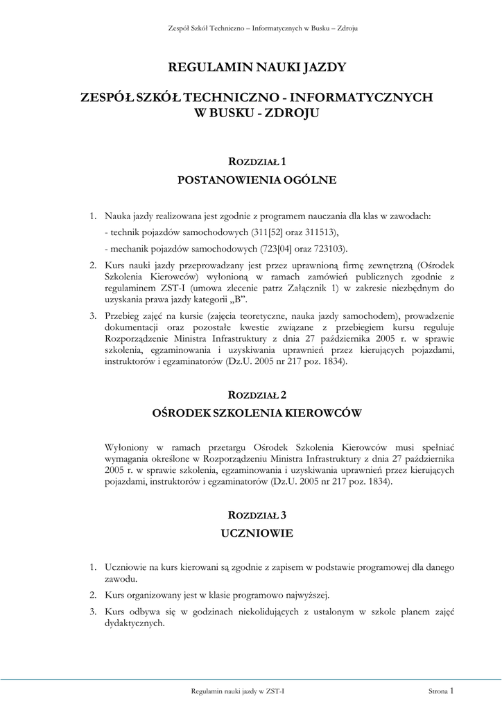 Regulamin Nauki Jazdy - BIP - Zespół Szkół Techniczno