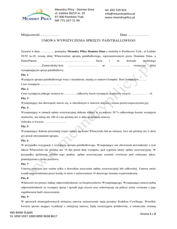 UMOWA WYPOŻYCZENIA SPRZĘTU PAINTBALLOWEGO