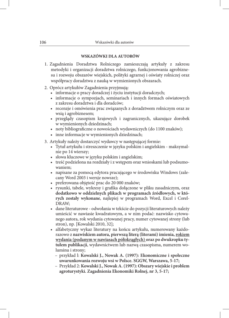 Wskazówki dla autorów - Centrum Doradztwa Rolniczego w