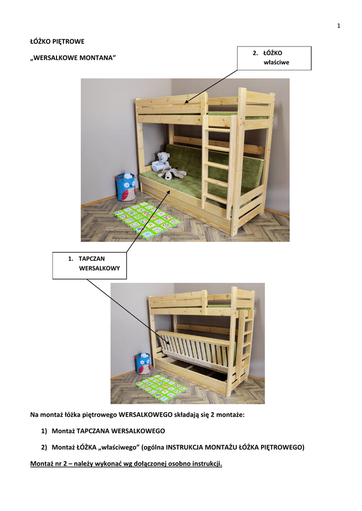 ŁÓŻKO PIĘTROWE „WERSALKOWE MONTANA” Na montaż łóżka